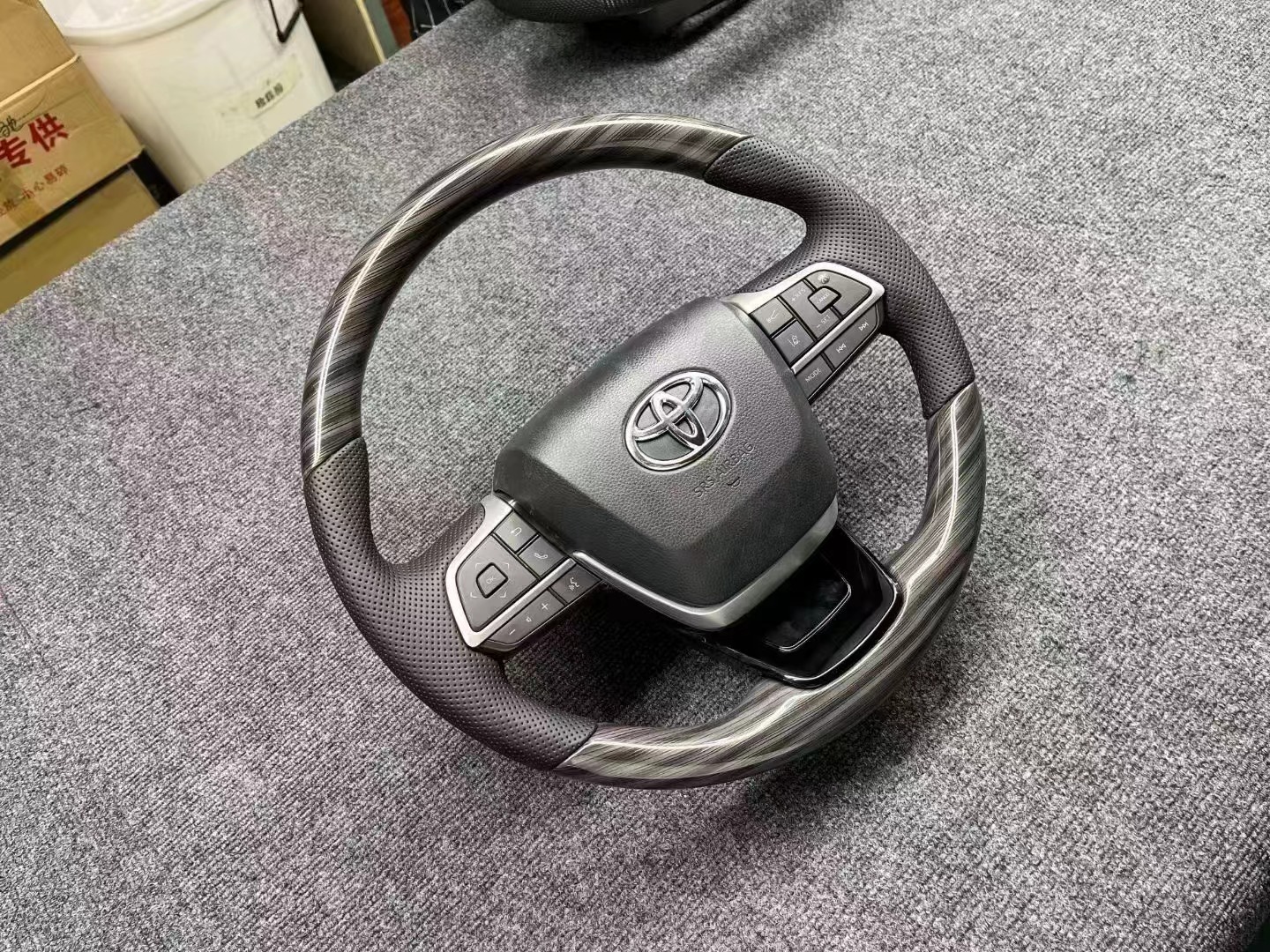 Custom Carbon Fiber and Wood Grain Steering Wheel for Toyota Sienna Granvia Highlander Crown