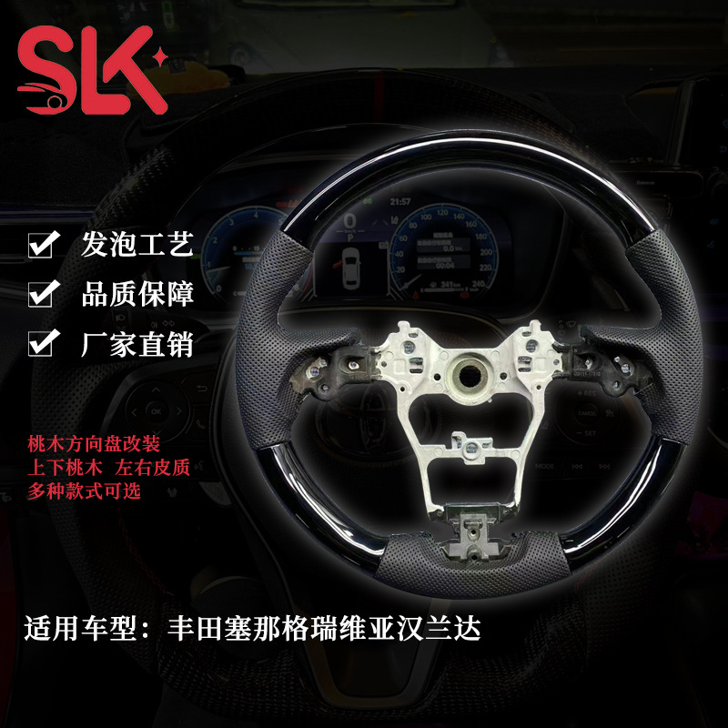 Upgrade your driving experience with this premium carbon fiber and wood grain steering wheel designed for Toyota Sienna, Highlander, and Crown models today.