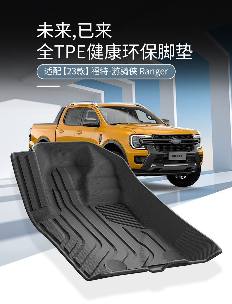 Upgrade your 2023-2024 Ford Ranger with odorless, wear-resistant TPE floor mats. Features a dual-layer coil design for superior debris capture and easy cleaning.