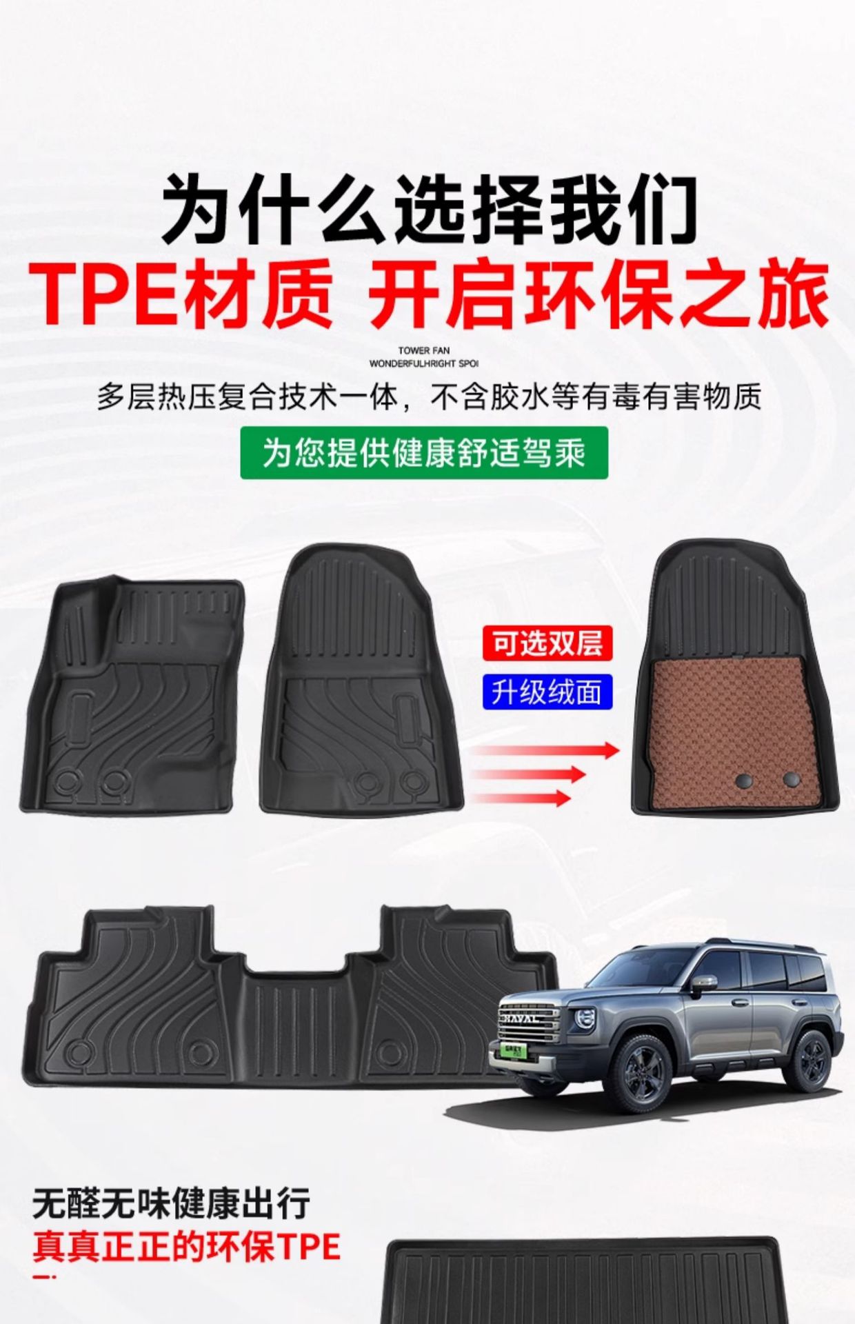 Custom Full Coverage TPE Floor Mats and Trunk Mat for Haval Raptor Off-Road SUV