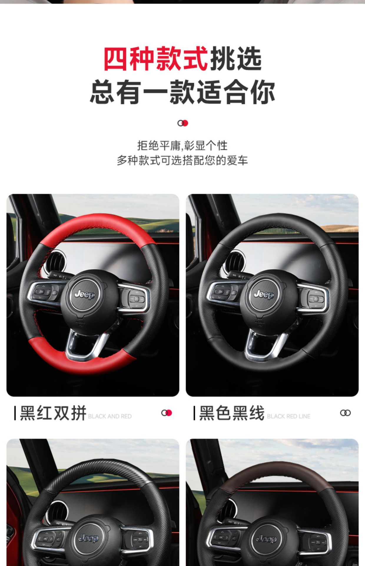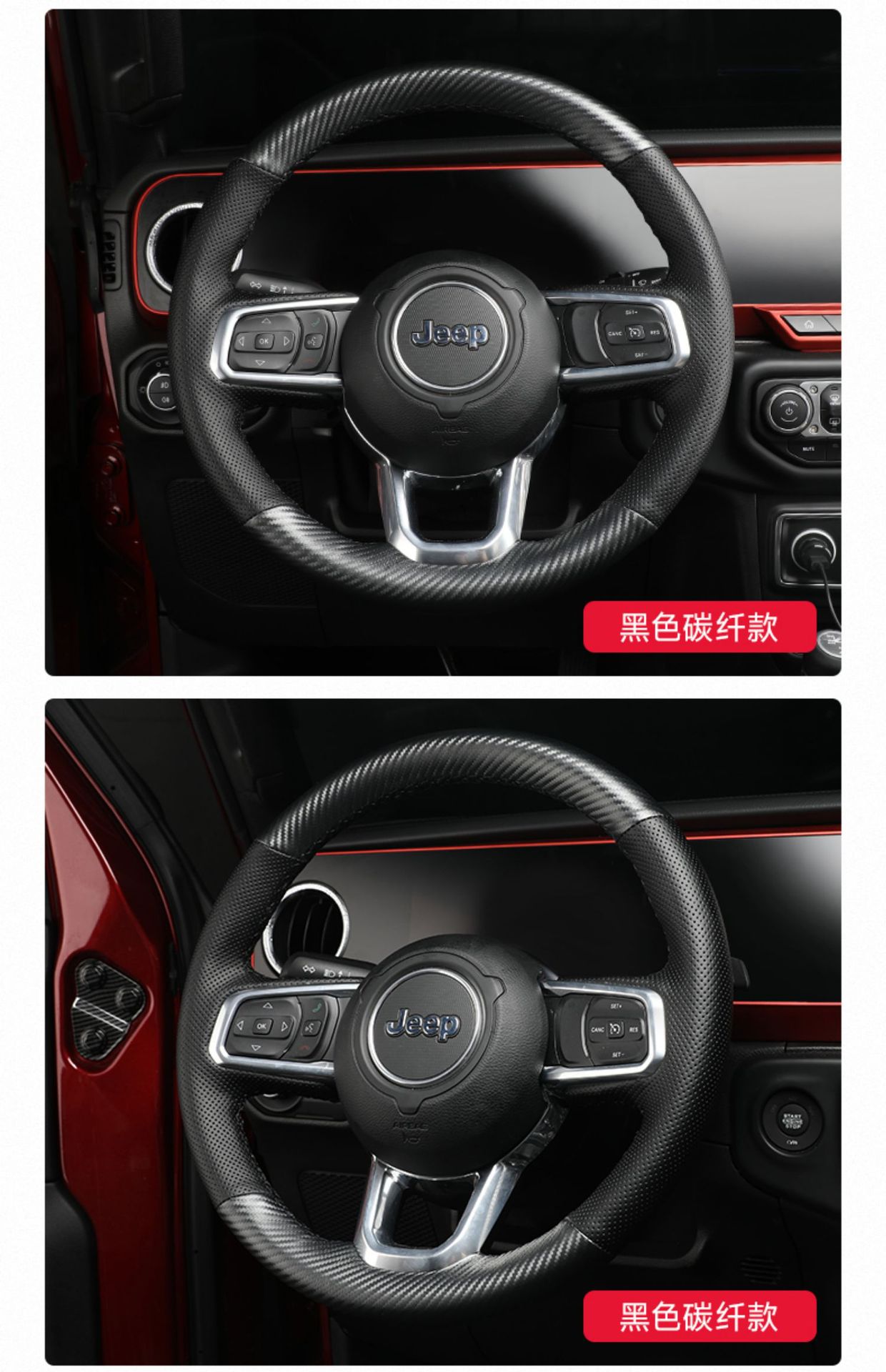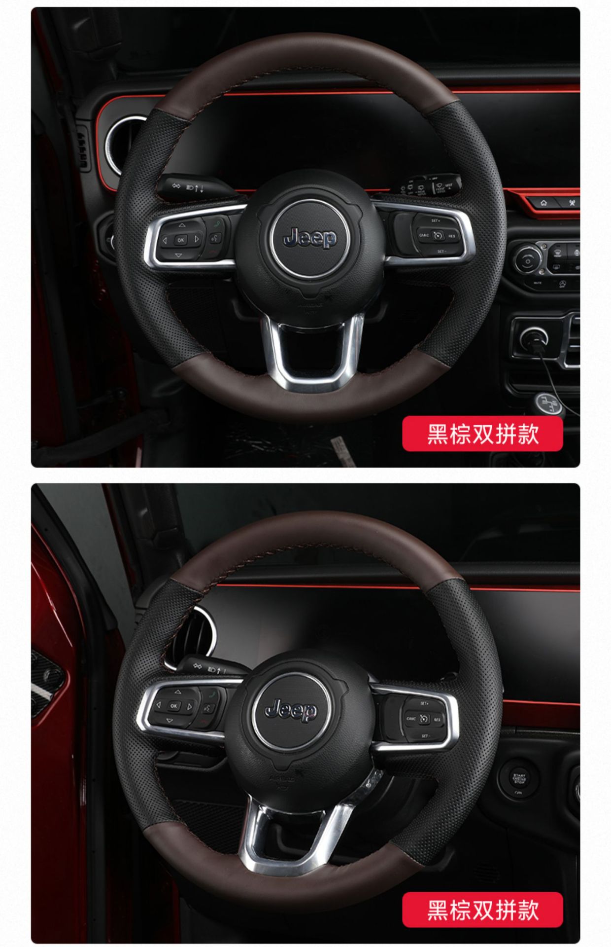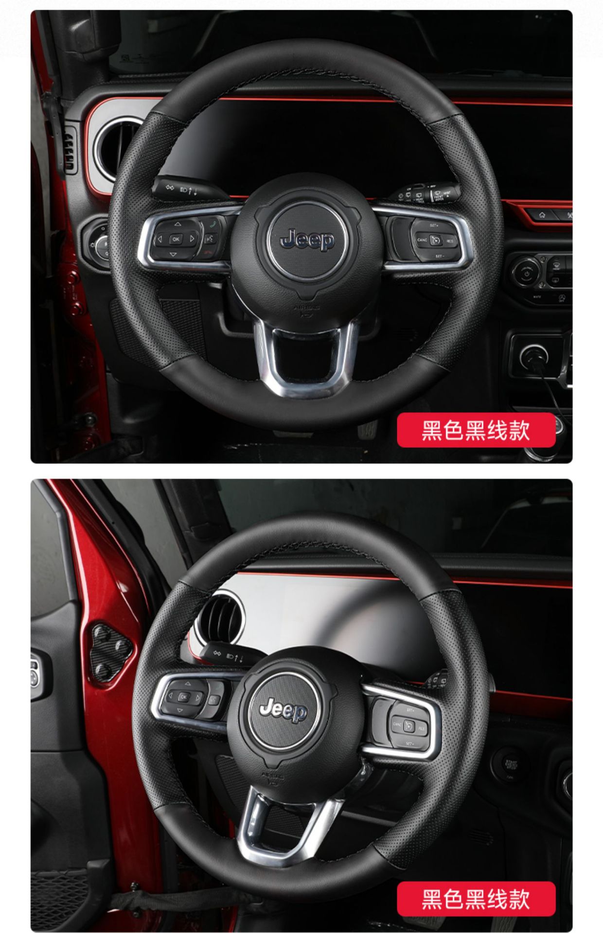 Custom Hand-Stitched Steering Wheel Cover for Jeep Wrangler JL 2018-2023 Interior Wrap