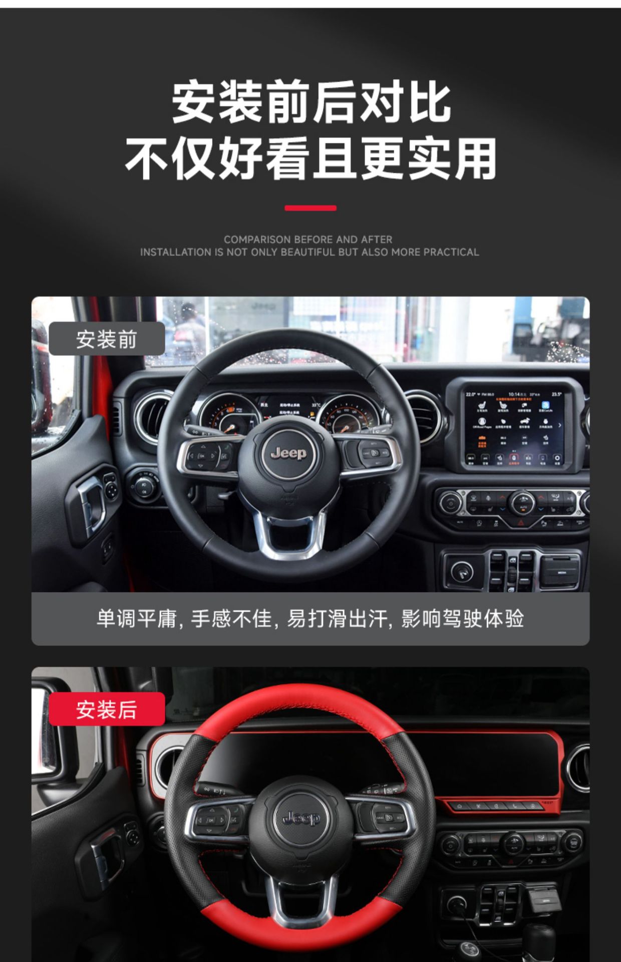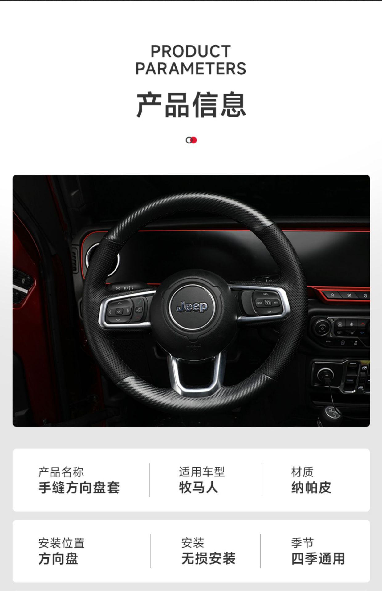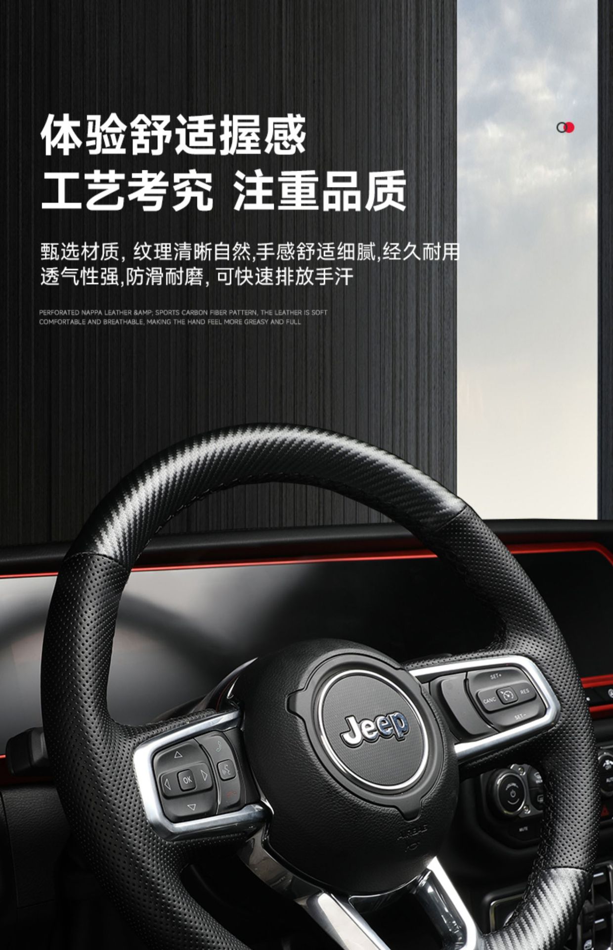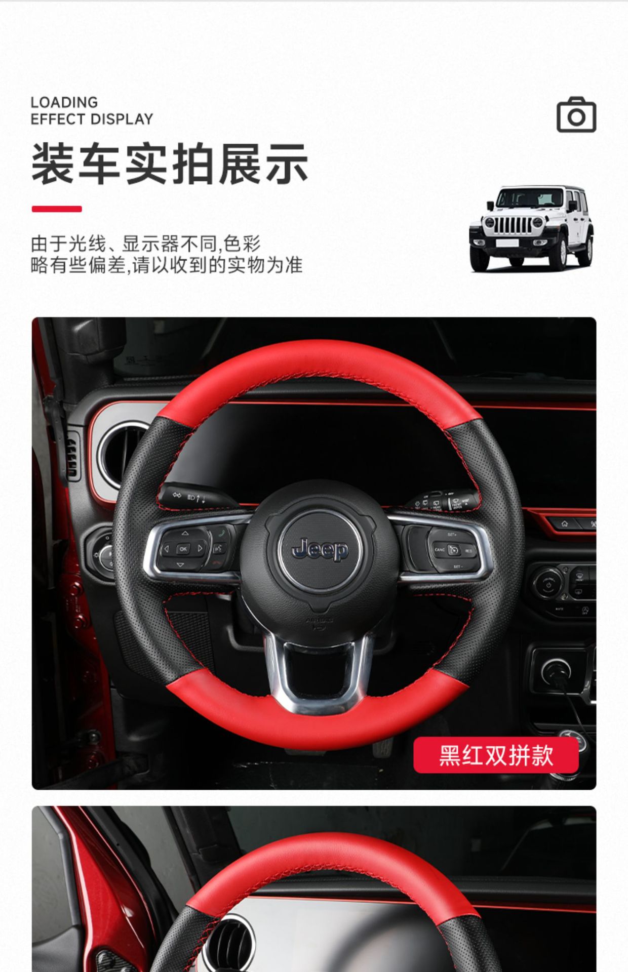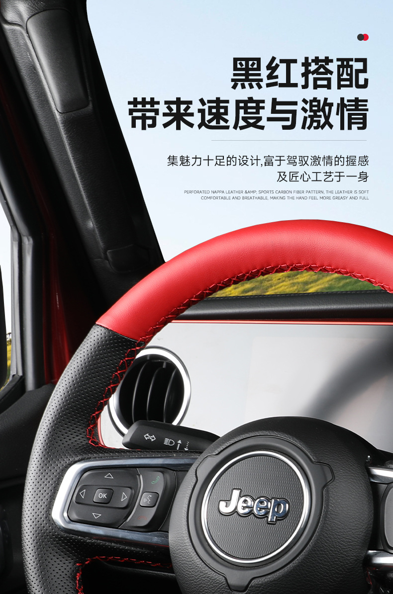 Custom Hand-Stitched Steering Wheel Cover for Jeep Wrangler JL 2018-2023 Interior Wrap