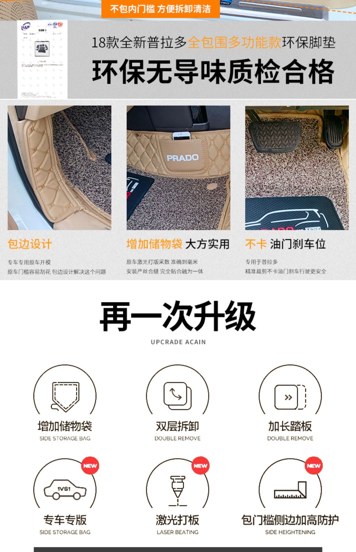 • Premium synthetic leather material provides a waterproof and anti-scratch barrier for your vehicle’s original carpet.