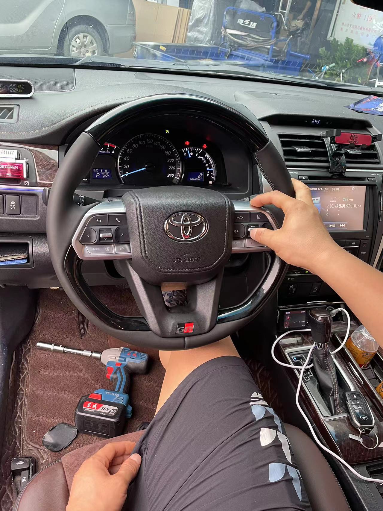 Tags: automotive steering parts, carbon fiber steering wheel, custom steering wheel assembly, luxury car steering, toyota interior upgrade, wood grain steering wheel