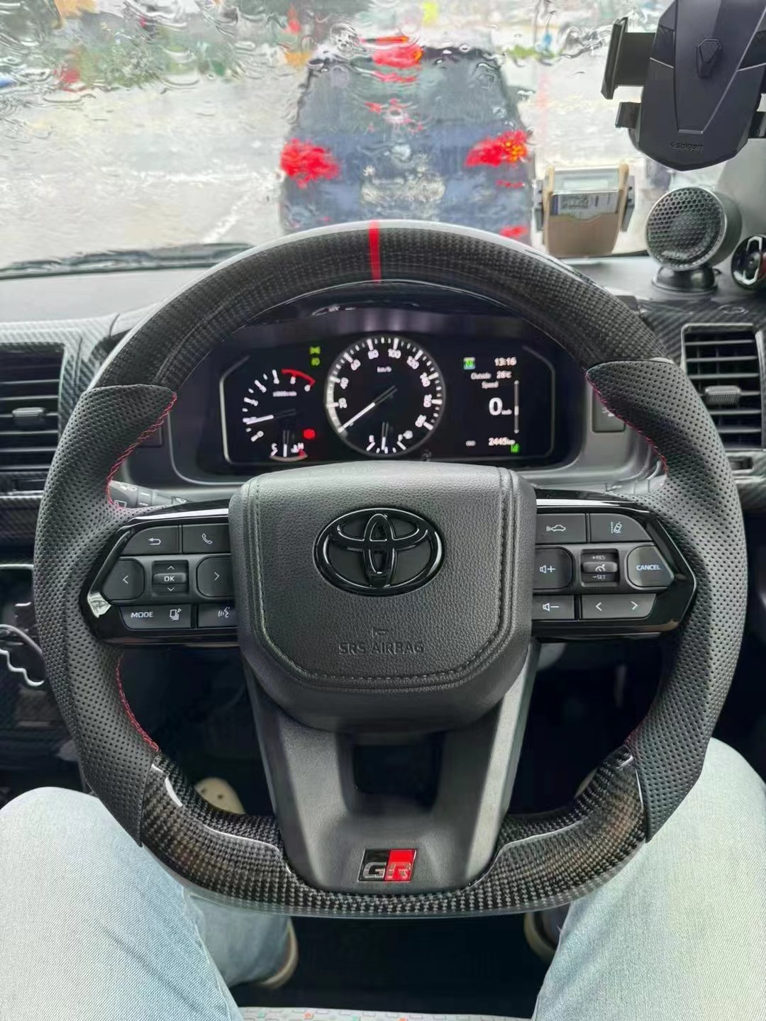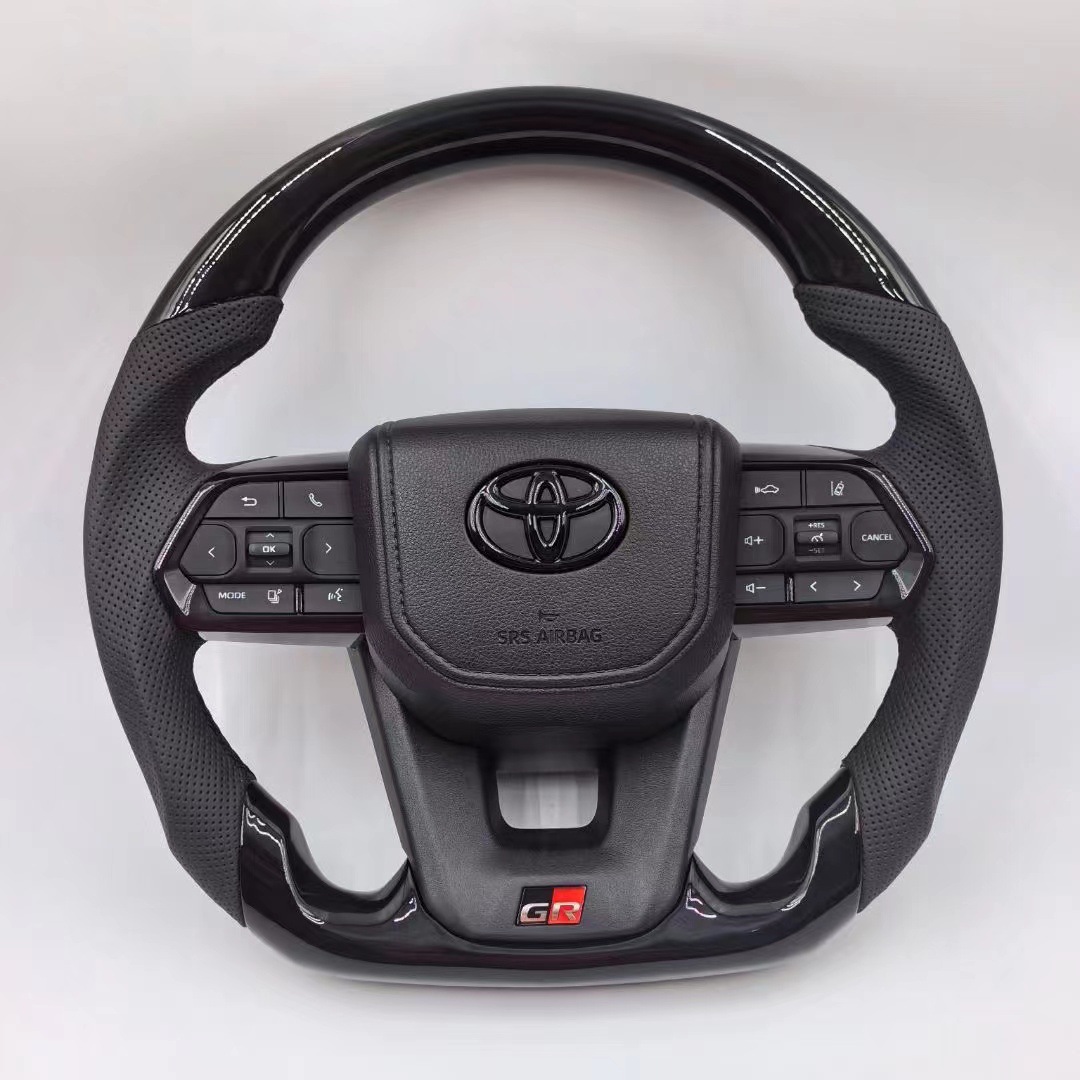 Custom Steering Wheel Assembly with Carbon Fiber and Wood Grain Finish for Toyota Land Cruiser Prado Hilux Crown Series