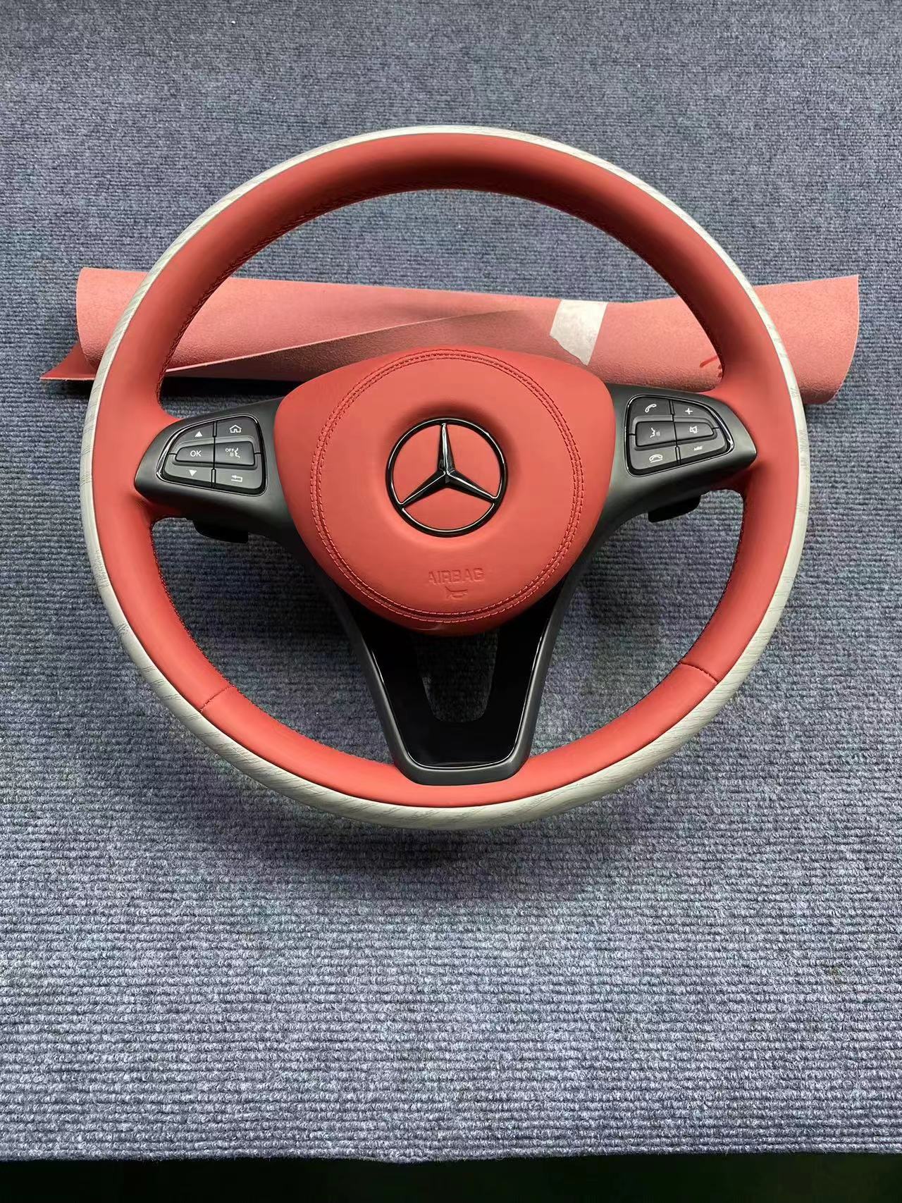 Custom Steering Wheel Upgrade for Mercedes-Benz, Carbon Fiber and Alcantara Wood Grain Finish Replacement Interior Part