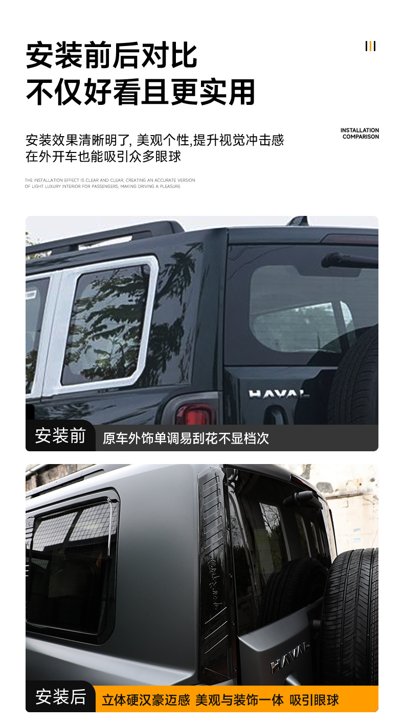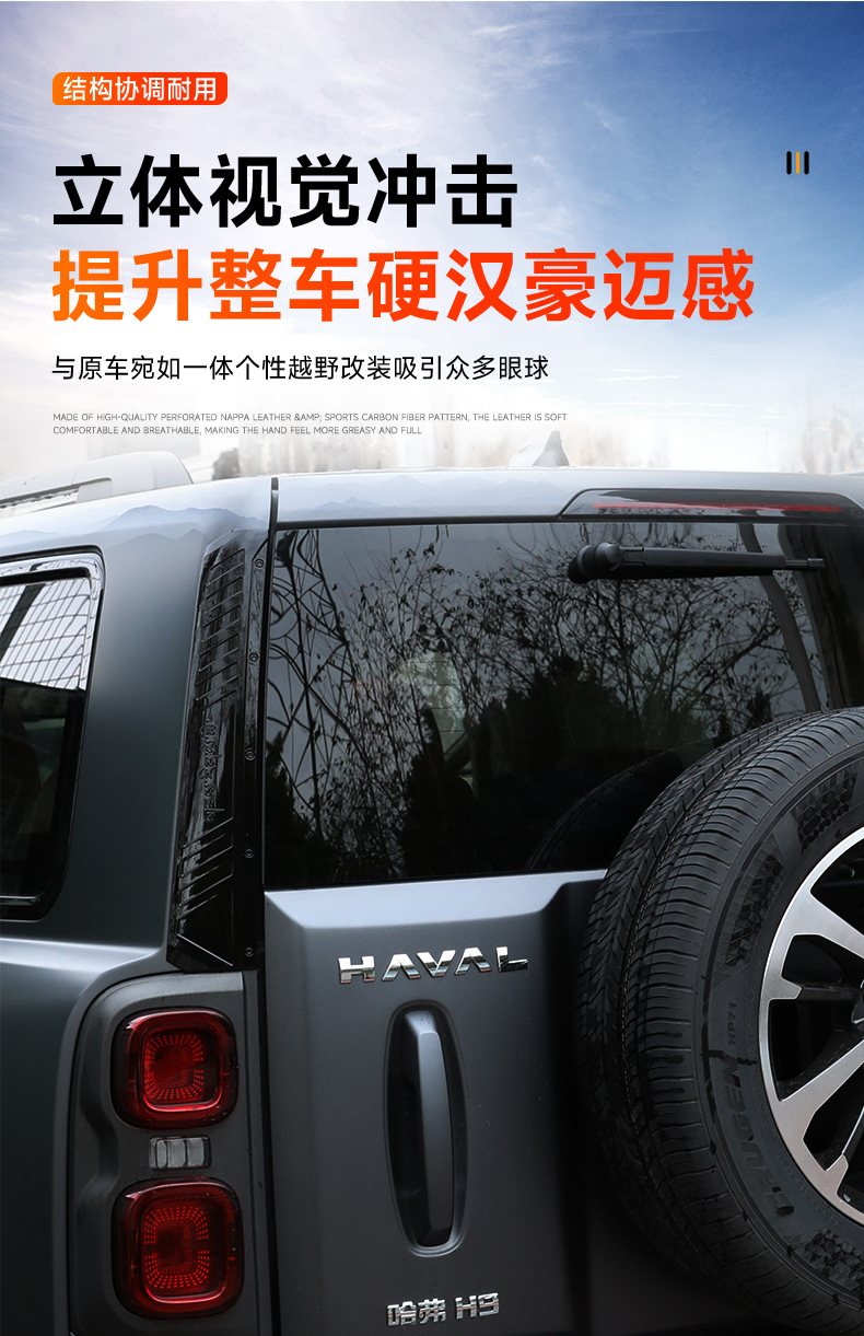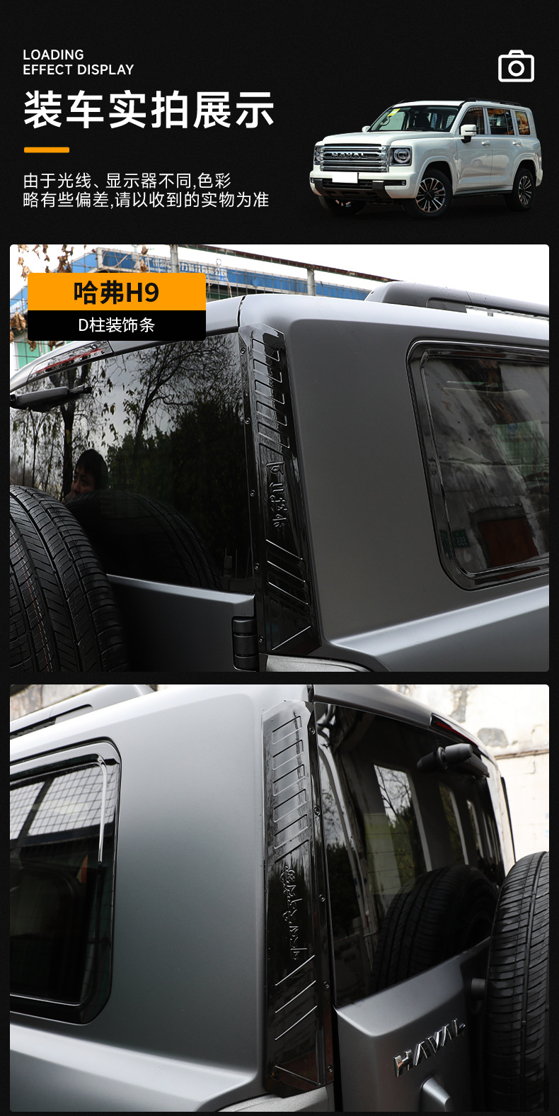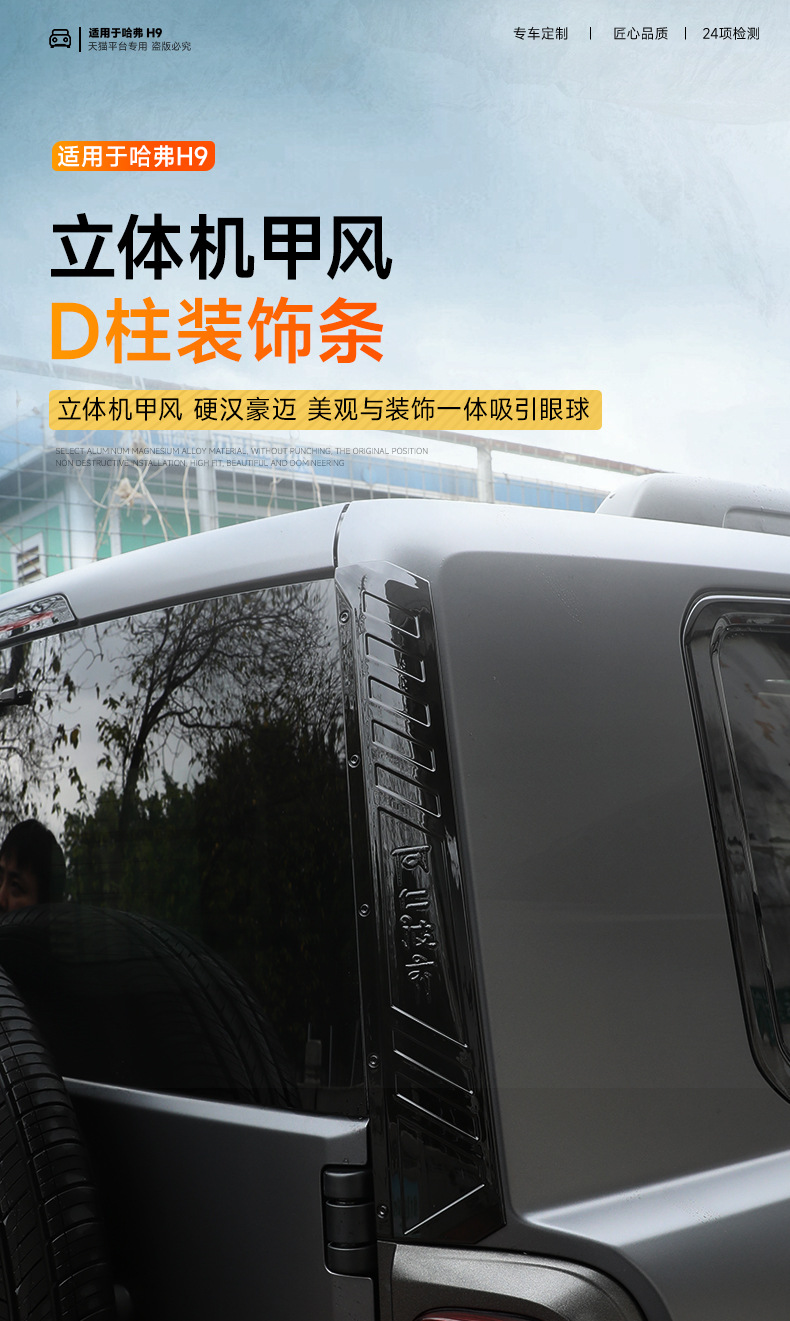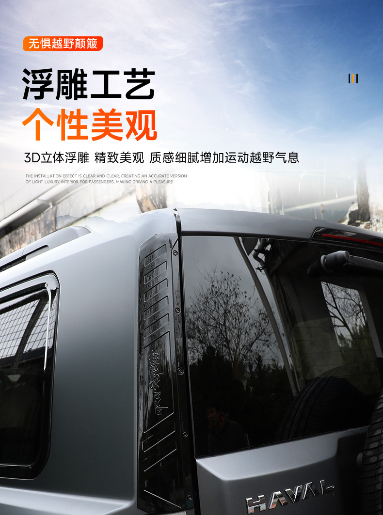 Upgrade your Haval H9 with premium D-pillar anti-scratch trim guards. Protect exterior paint from damage while adding a rugged, custom look. Easy DIY install.