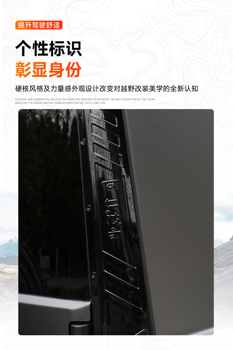 - Enhances exterior aesthetics with a rugged mechanical design that complements the vehicle’s off-road styling.