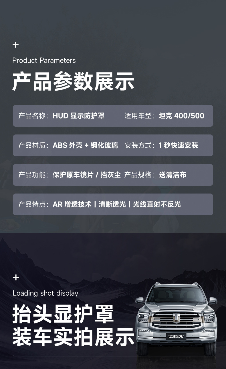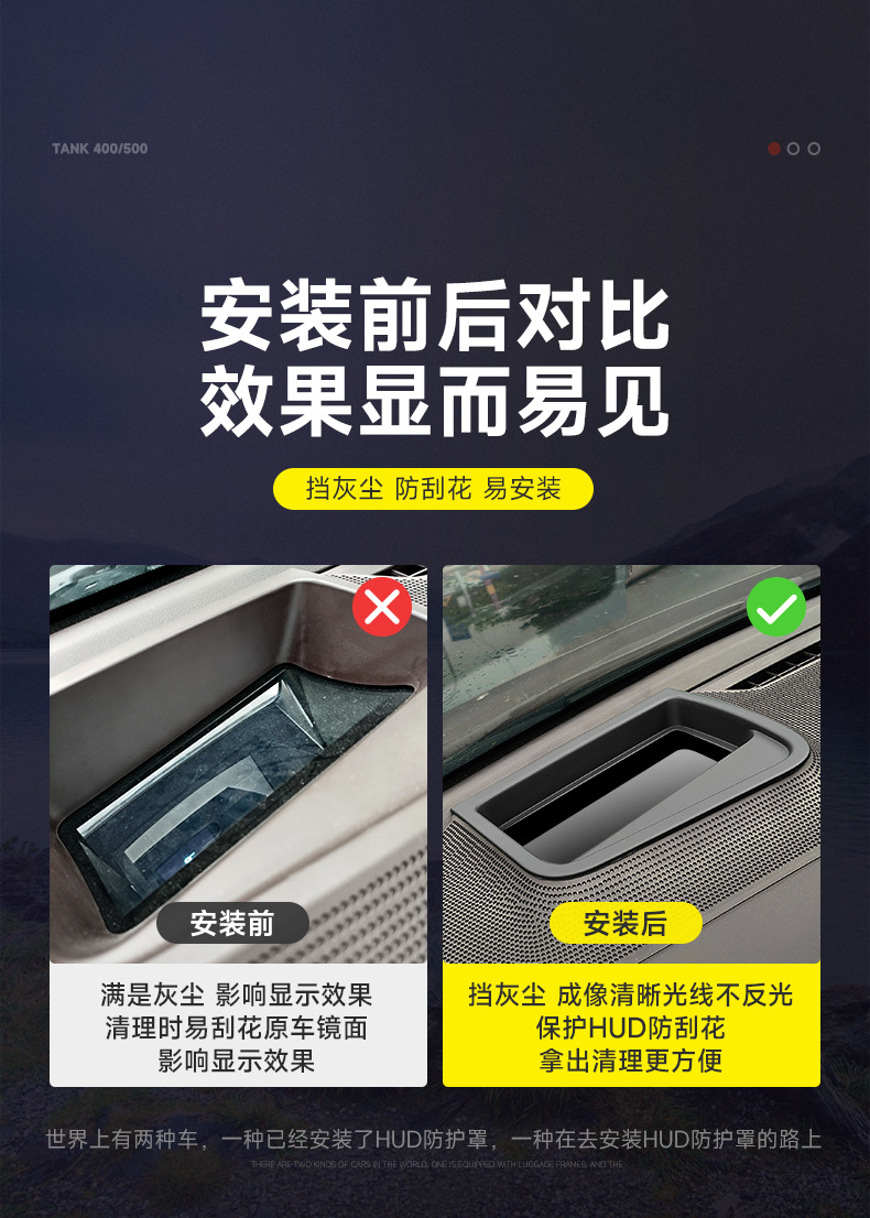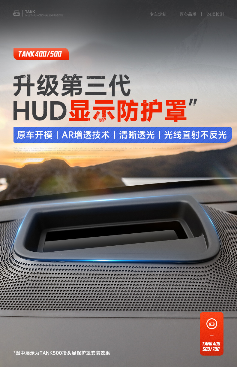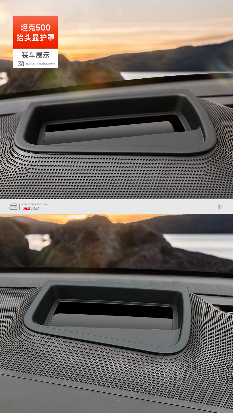 Enhance your driving experience with this HUD protective frame for Tank 400/500 Hi4-T. Reduces glare and protects your dashboard display from heat and dust.