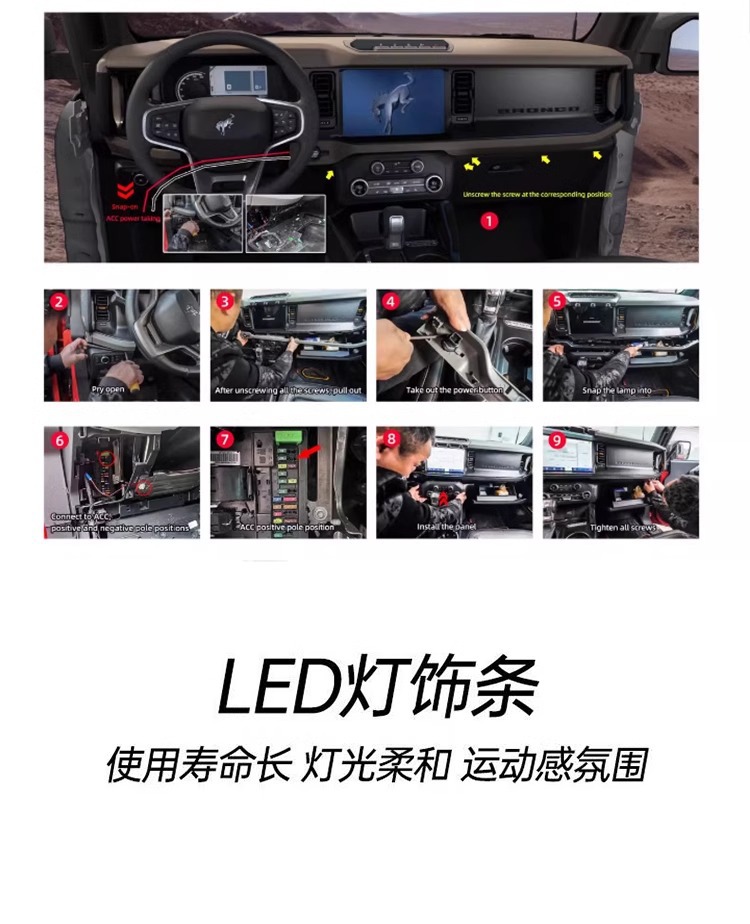 Dedicated to Ford Liema instrument panel atmosphere lamp modification co-pilot touch color dynamic car interior atmosphere lamp