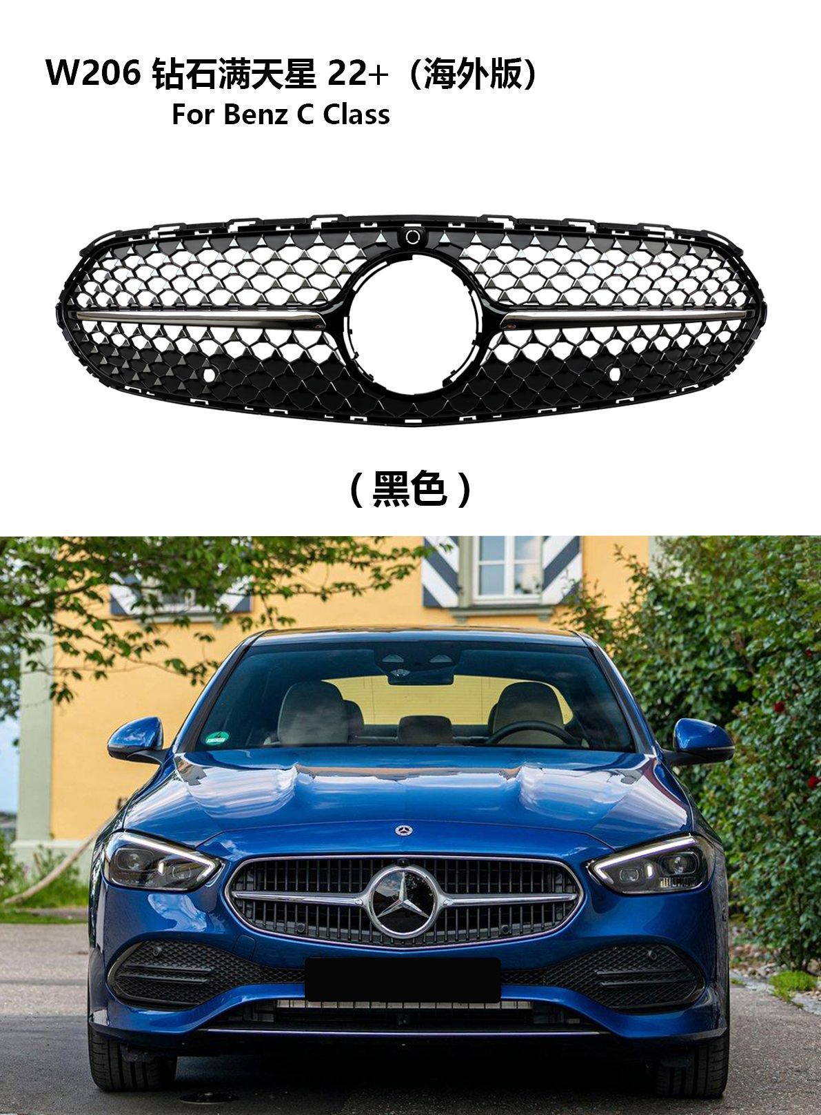 Upgrade your Mercedes-Benz C-Class W206 with this premium diamond style front grille. Durable ABS material, perfect fitment, and improved airflow for your car.