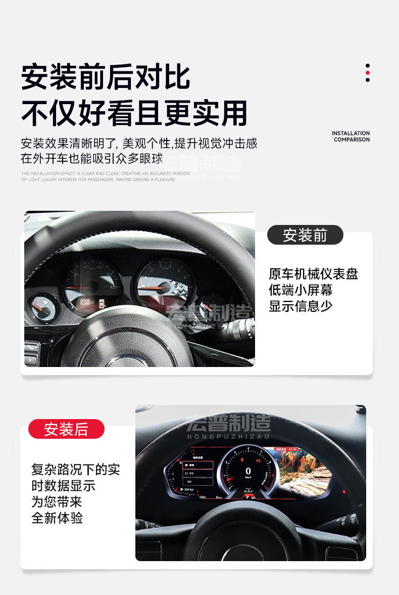 - Plug-and-play installation with high-quality electrical connectors for a professional-grade automotive cockpit upgrade.