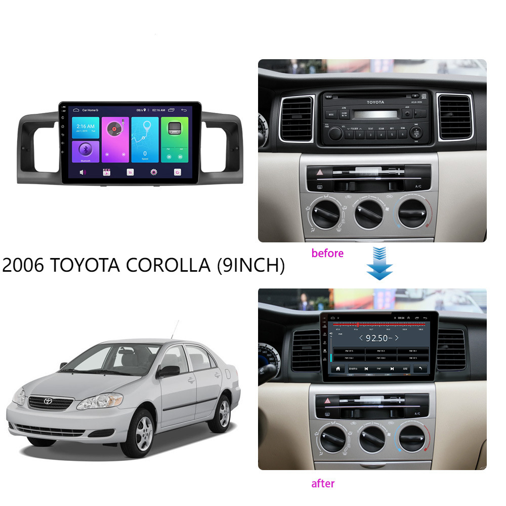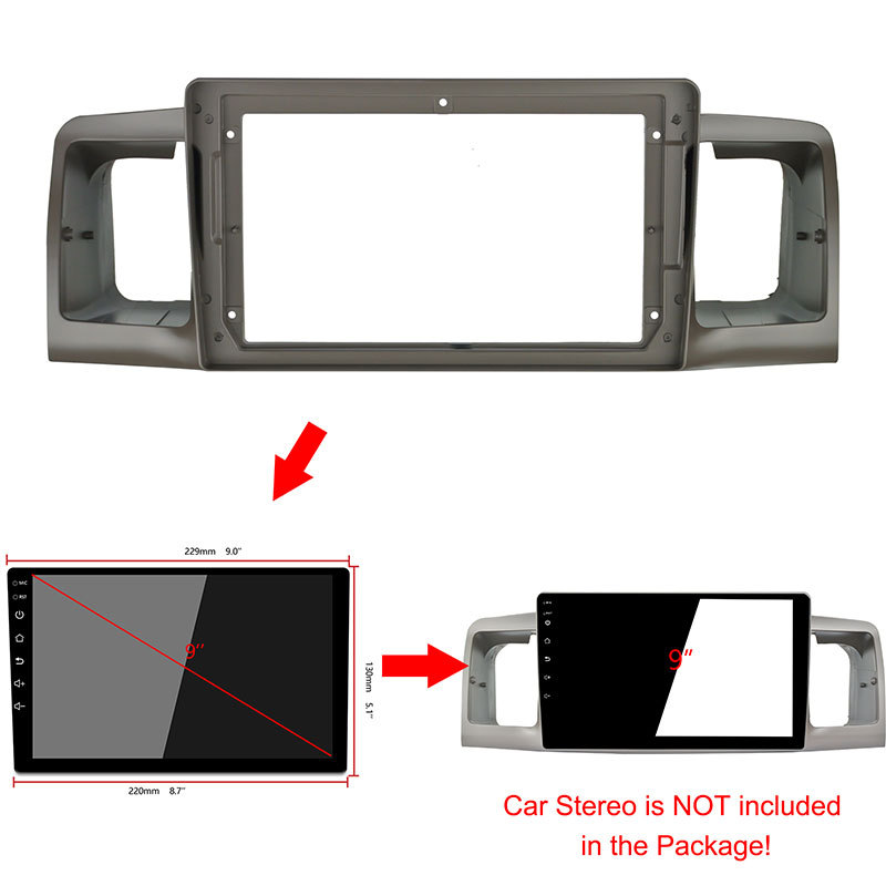 Tags: 9 inch android frame, Car Radio Fascia, Double Din Stereo Panel, interior trim bezel, navigation frame, Toyota Corolla Dash Kit