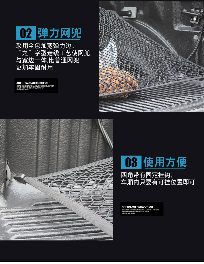 - Dual Layer Storage: Features a double-layer elastic design that securely holds items in place while preventing cargo shift during transit.