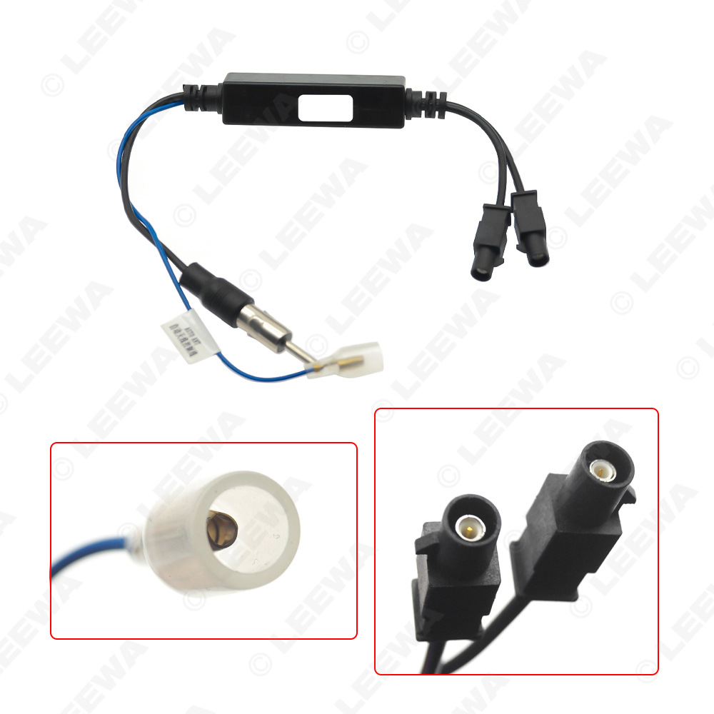 Tags: aerial amplifier harness, Audi antenna connector, car radio antenna cable, dual FAKRA male, FAKRA adapter, FM signal booster, VW radio adapter