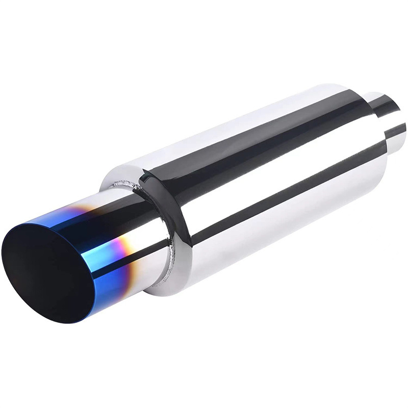 Tags: burnt blue exhaust, car modification parts, chrome exhaust finish, exhaust muffler tip, resonator tip, stainless steel tailpipe, universal muffler