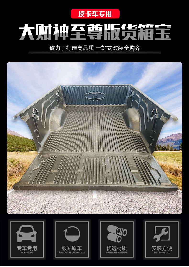 Protect your Huanghai Dacaishen pickup with this durable, impact-resistant truck bed liner. Non-slip textured surface prevents cargo shifting and bed damage.