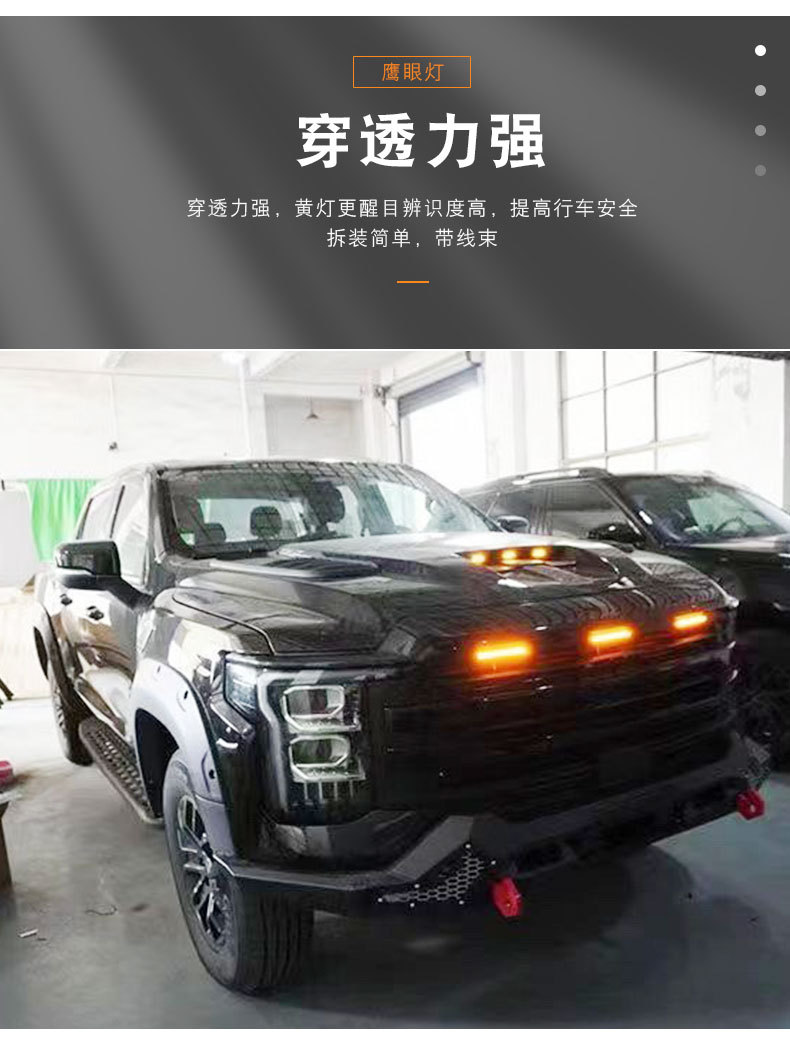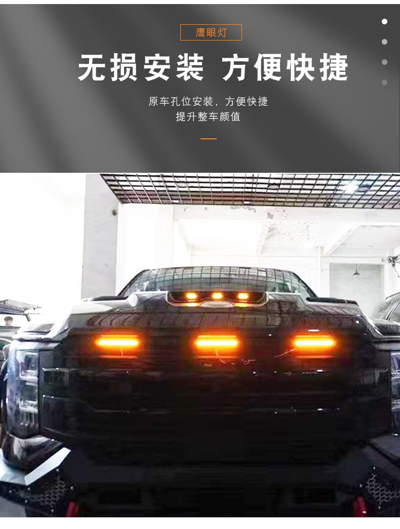 Tags: automotive front grille lighting, bumper lighting assembly, exterior modification kit, LED eagle eye lamp, off-road marker lights, pickup grille lights