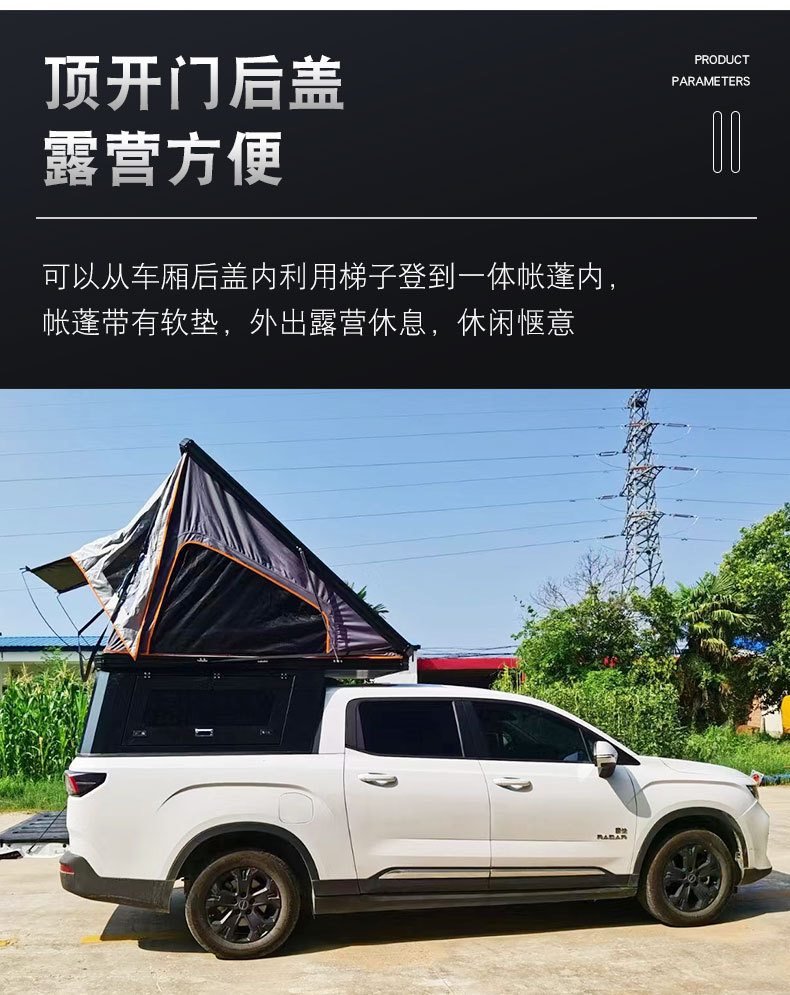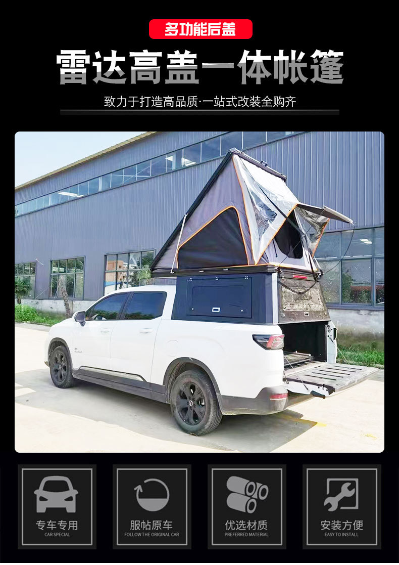 Upgrade your Radar RD6 with this integrated electric pickup bed canopy and camping tent. Durable, waterproof, and easy to deploy for professional overlanding.