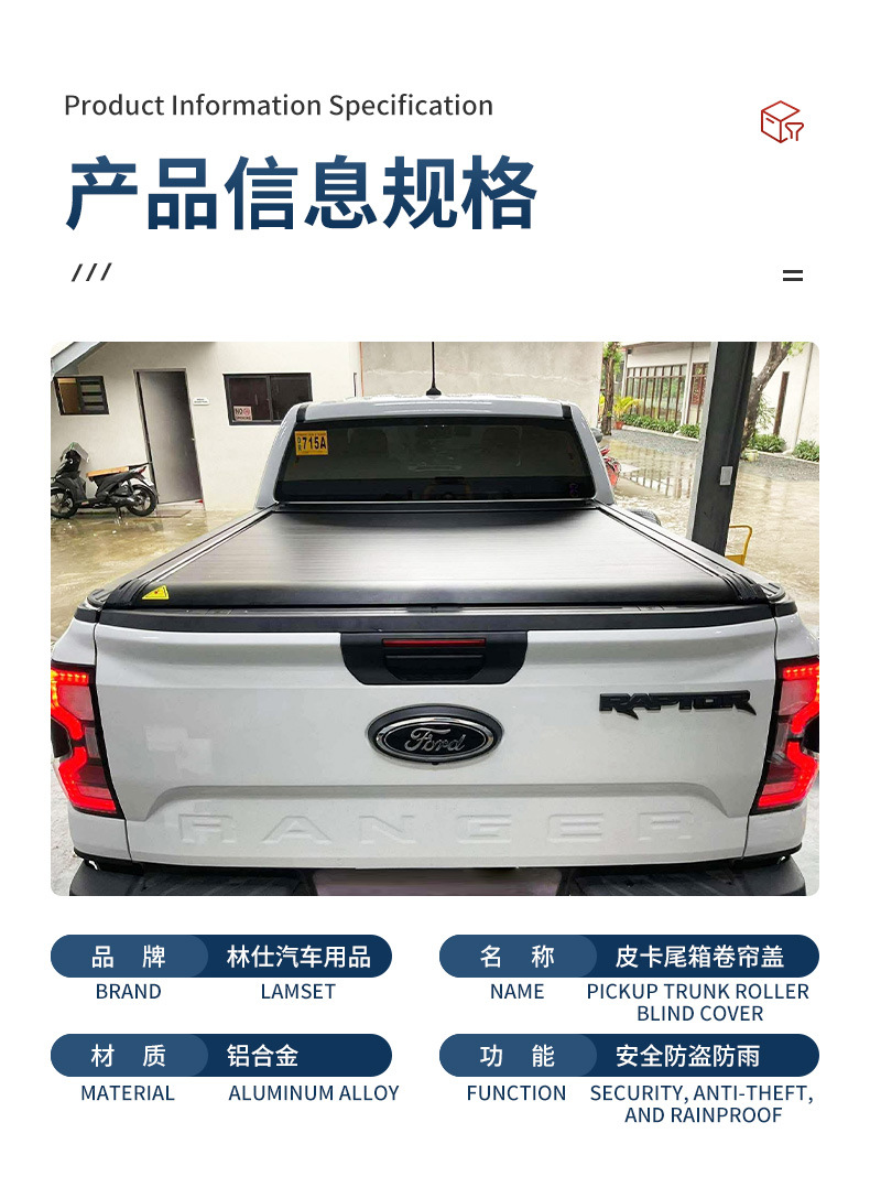 Electric Retractable Tonneau Cover for Ford Ranger and Pickup Trucks Aluminium Roller Shutter Truck Bed Lid