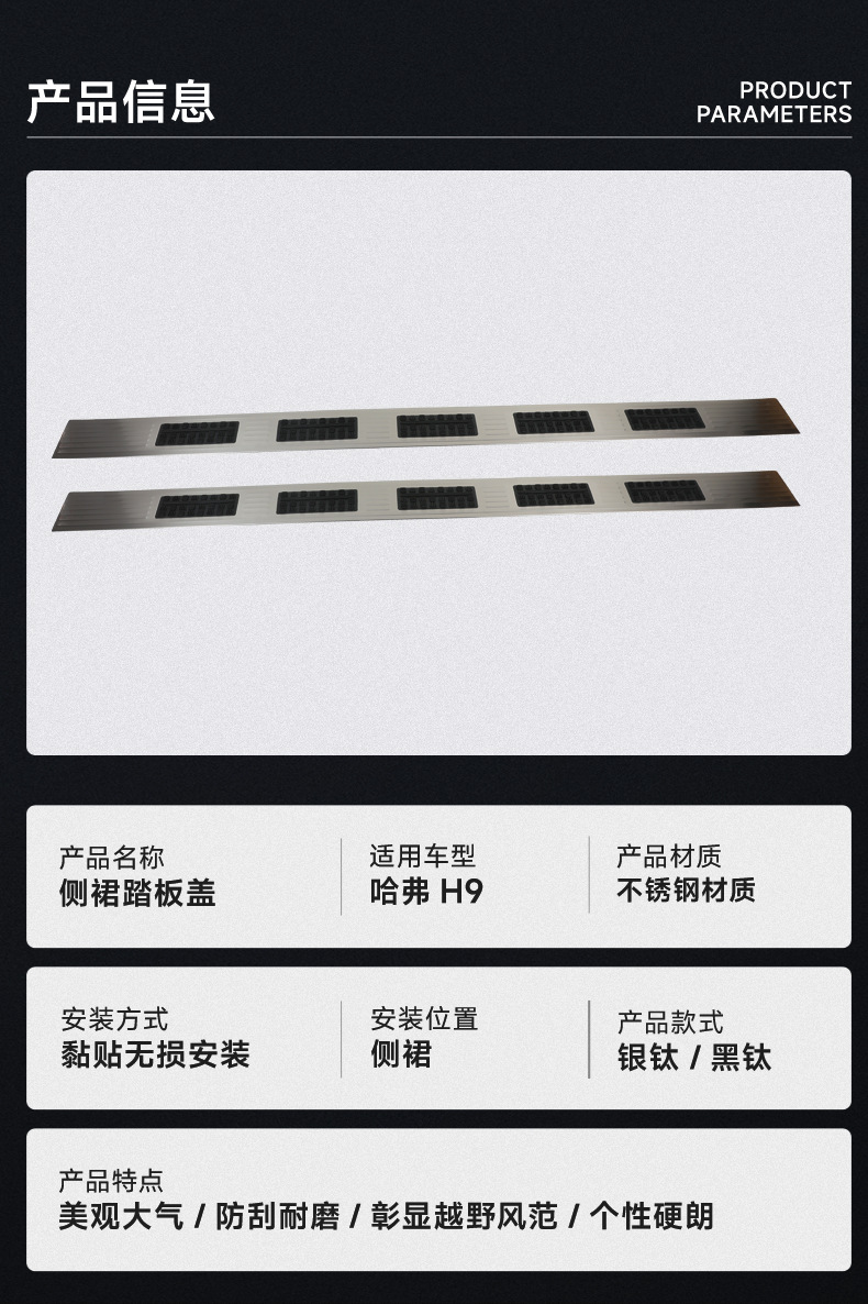 Tags: electric running board cover, Haval H9 accessories, side panel trim, side step protector, stainless steel door sill, SUV exterior guard, threshold decorative plate