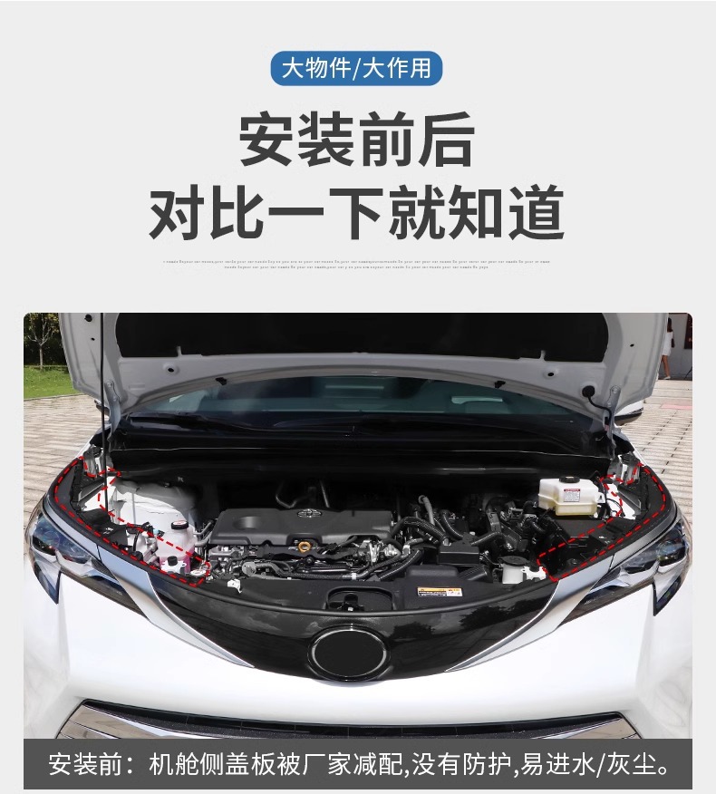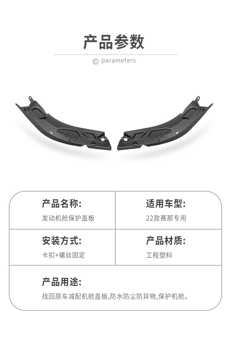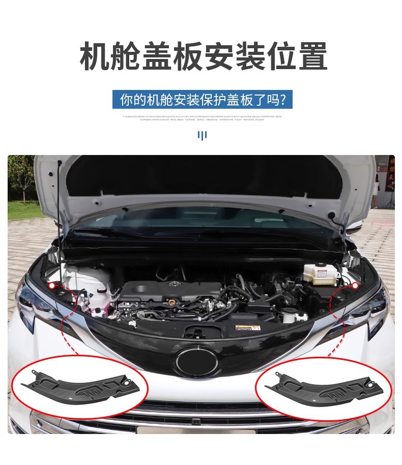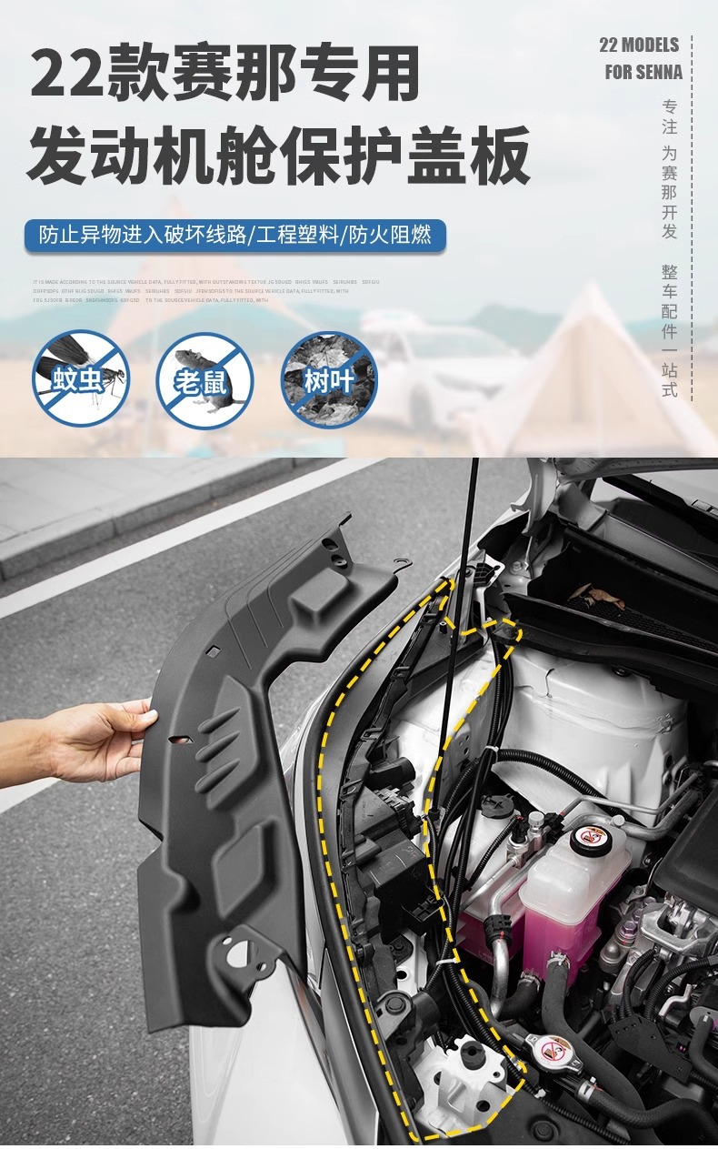 Tags: dustproof panel, engine bay cover, engine compartment guard, protective baffles, side cover plates, Sienna engine shield, under hood accessories