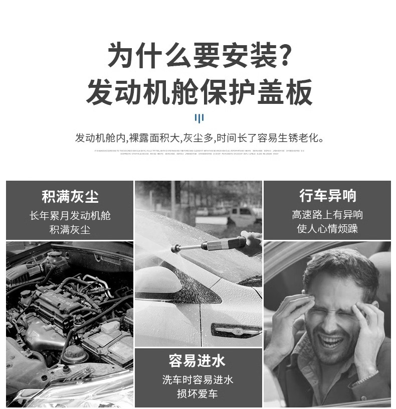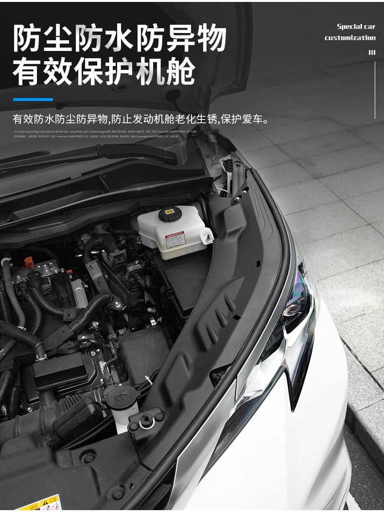 - Effectively shields internal components from water splashes and road grime to maintain a cleaner engine compartment.