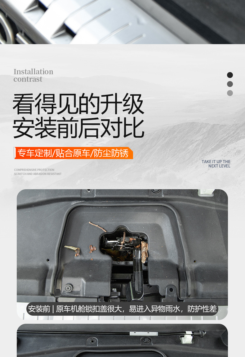 - Specifically designed to shield the hood lock mechanism from dust, rain, and debris to prevent rust and corrosion.