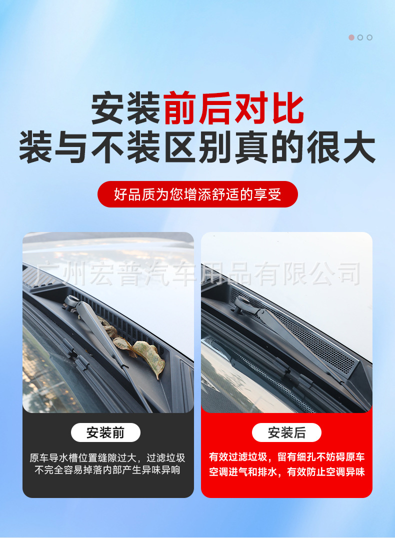Tags: air intake filter, car exterior accessories, cowl vent cover, engine hood vent grille, leaf guard mesh, water channel protector