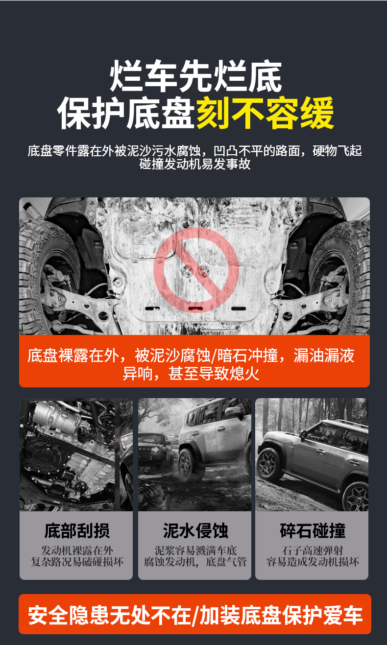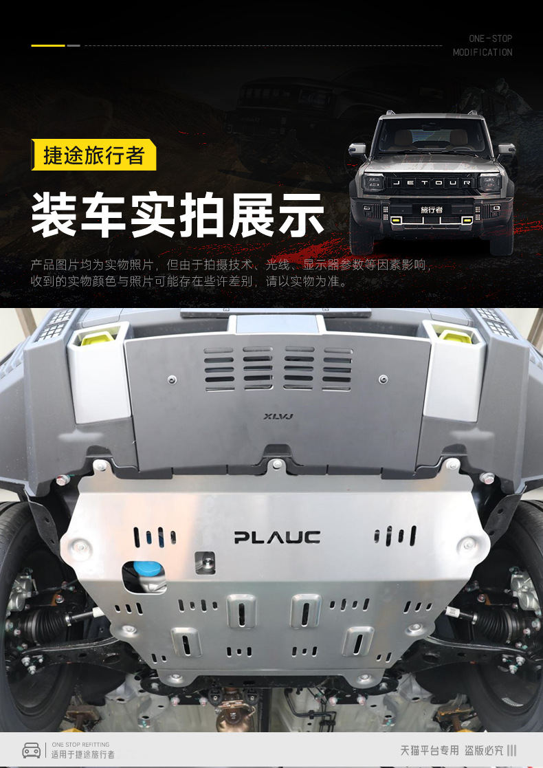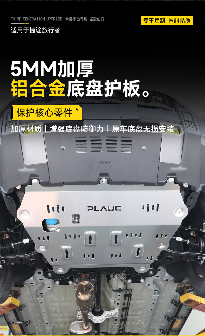 Upgrade your Jetour Traveller with our durable aluminum alloy engine skid plate. Provides essential underbody protection for the fuel tank and chassis armor.