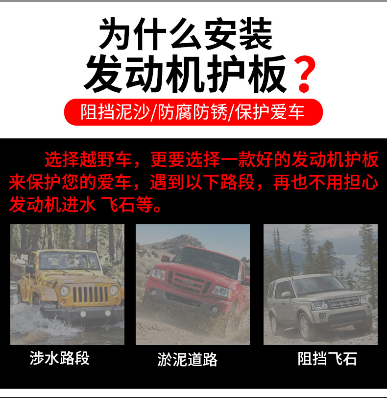 - Comprehensive Coverage: Provides full-coverage protection for the engine and underside against rocks, debris, and impacts.
