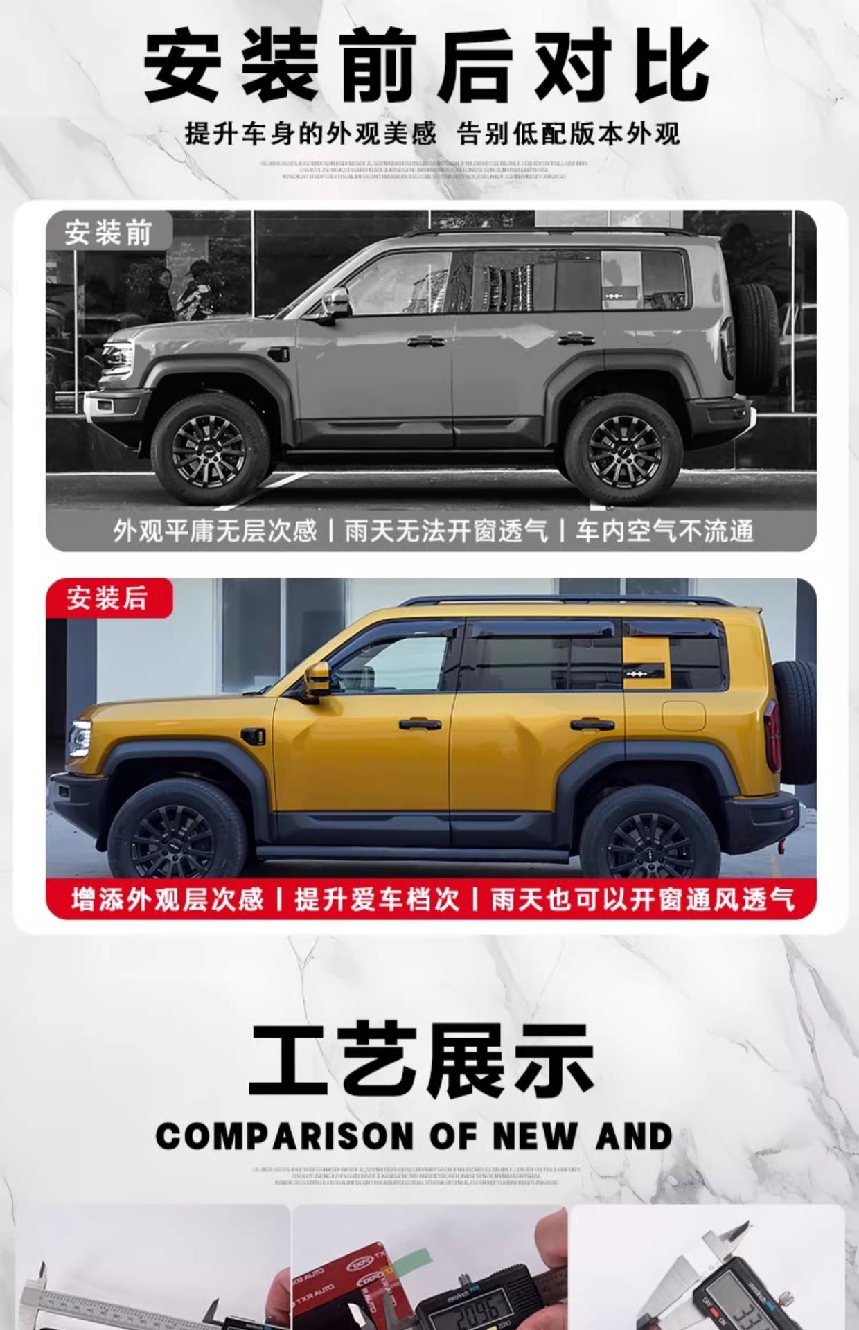 Be the first to review “Equation Leopard 5 rain shield transparent rain eyebrow window special modified rain shield thickened and widened off-road exterior accessories” Cancel reply