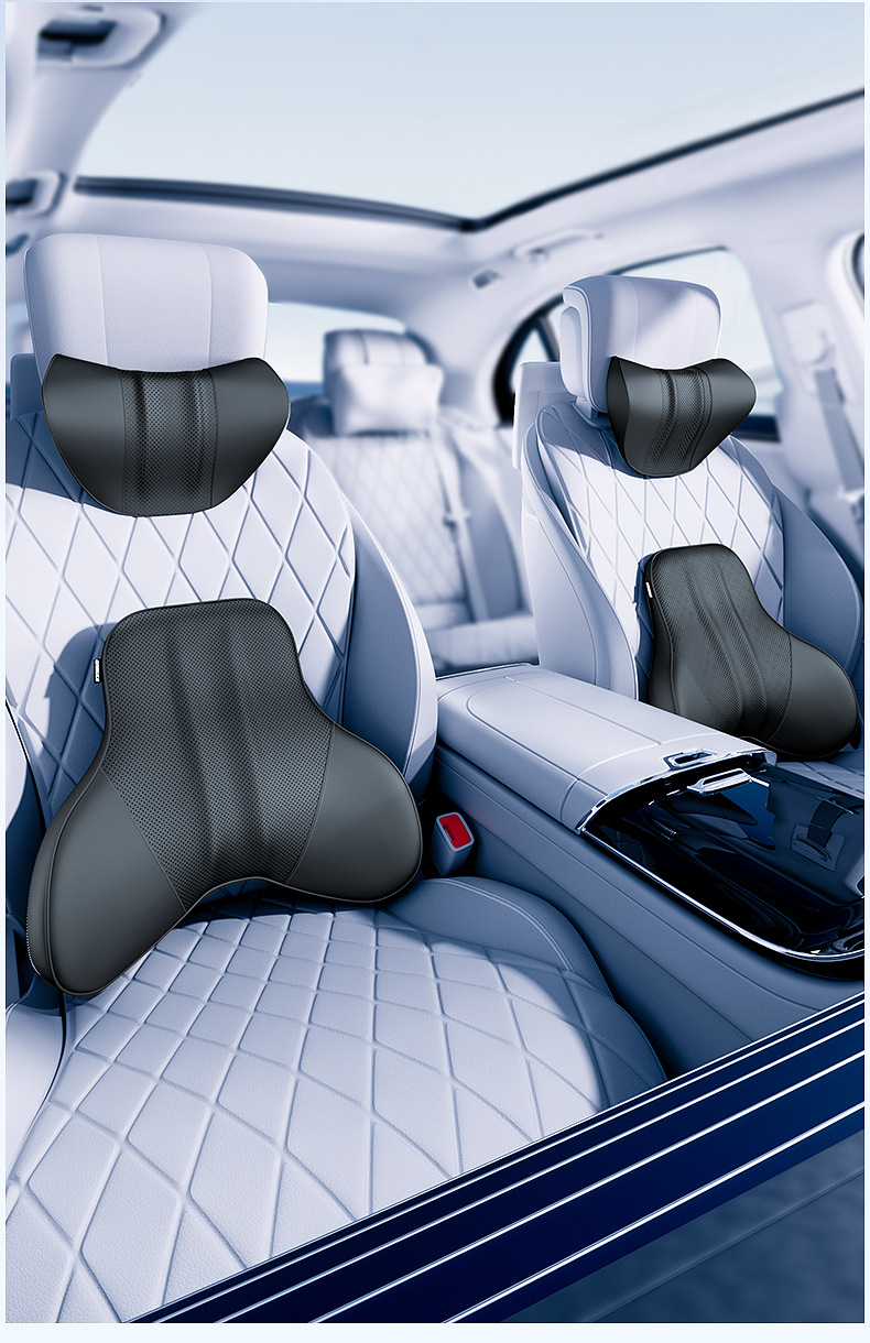Tags: automotive interior comfort, car neck pillow, lumbar support for car, memory foam back rest, seat spine protector, travel headrest cushion