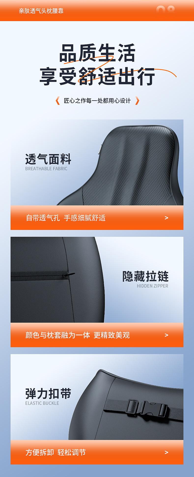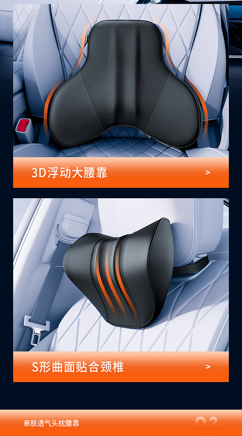 - Ergonomic design provides optimal support for the neck and lumbar region to reduce driving fatigue.
