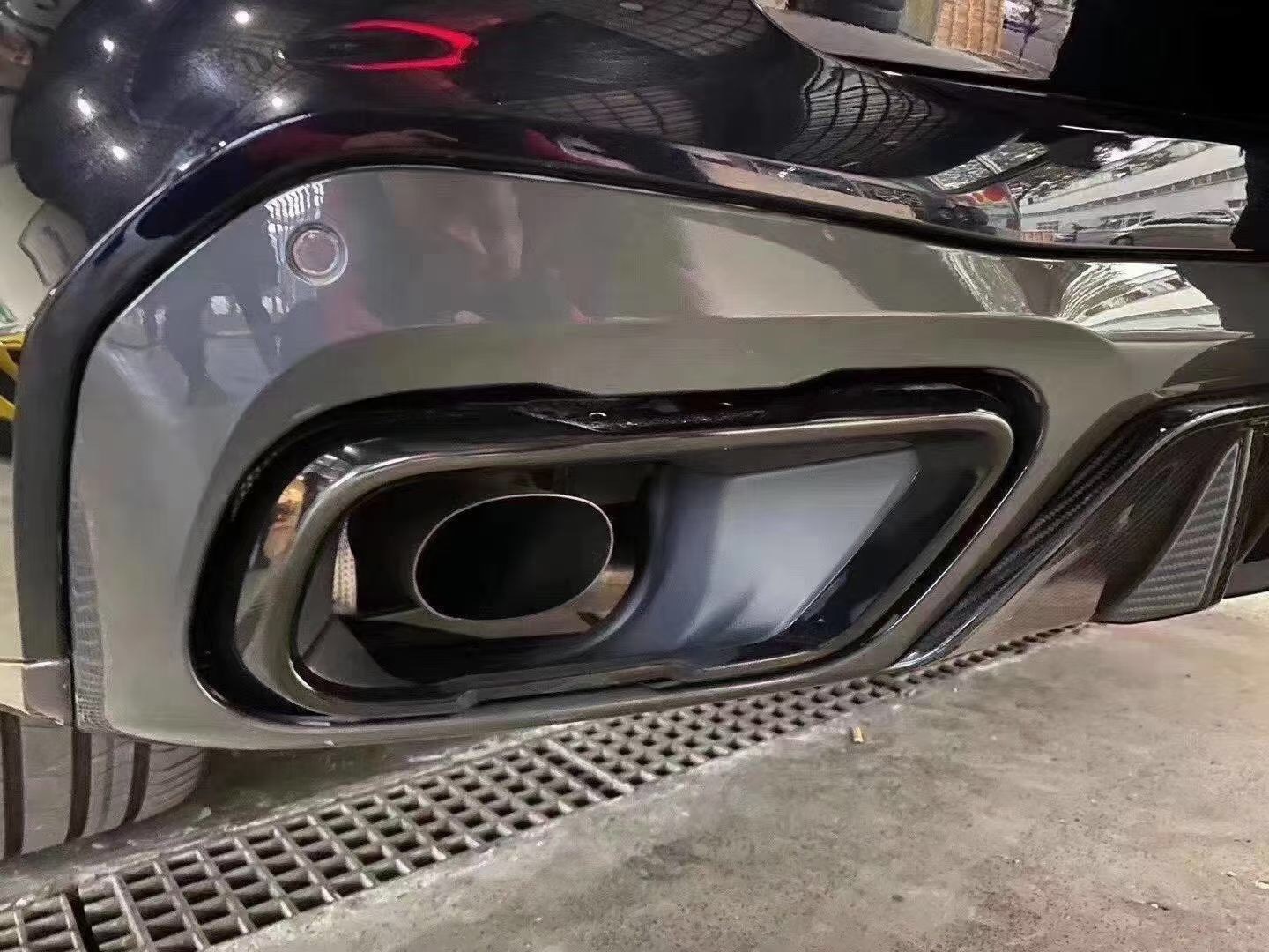 Tags: BMW X5 G05, exhaust tips, M Tech style, muffler pipe, rear exhaust trim, stainless steel exhaust, tailpipe cover