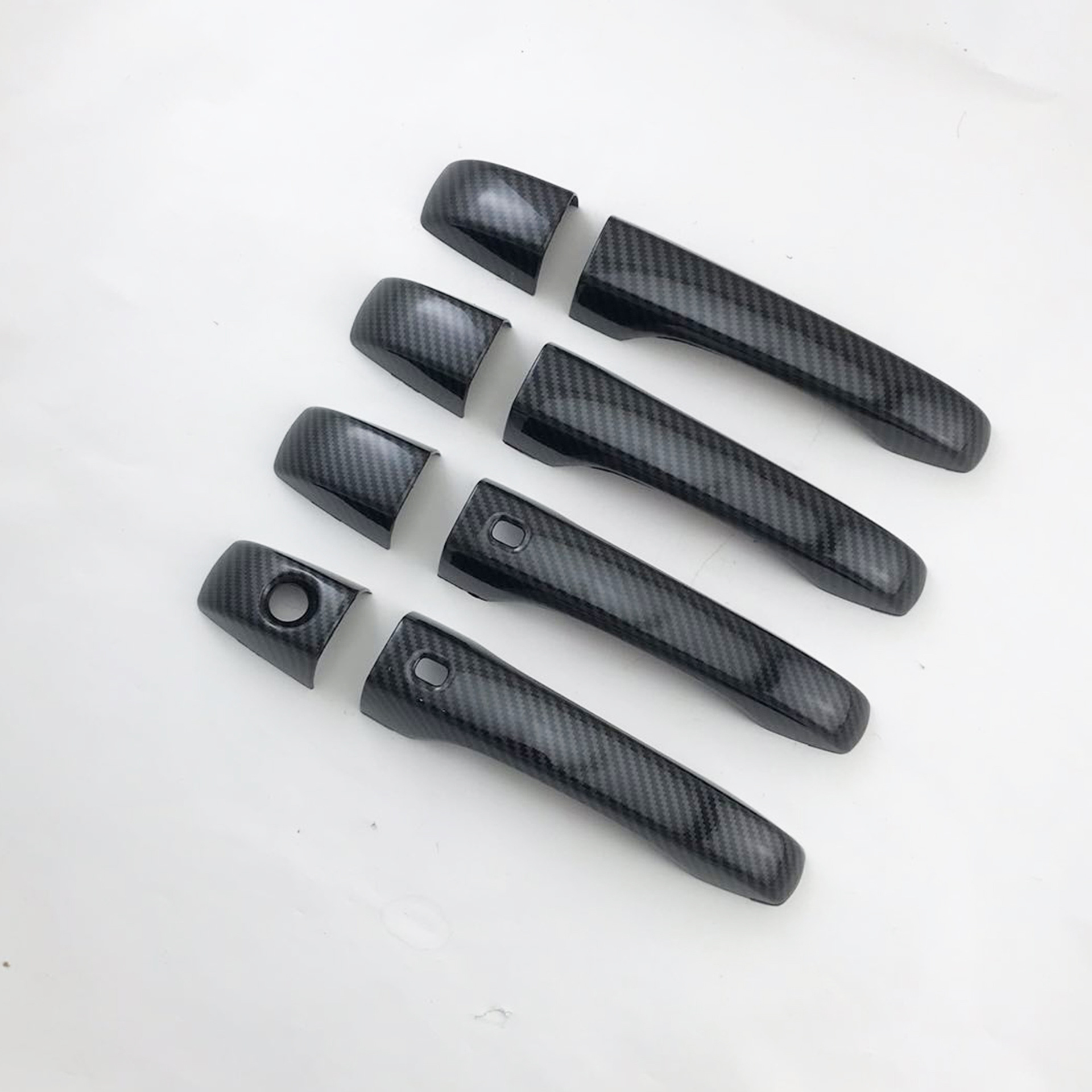 Tags: automotive door trim, carbon fiber handle caps, chrome handle trim, door handle covers, Door Handle Overlay, exterior car accessories, vehicle garnish