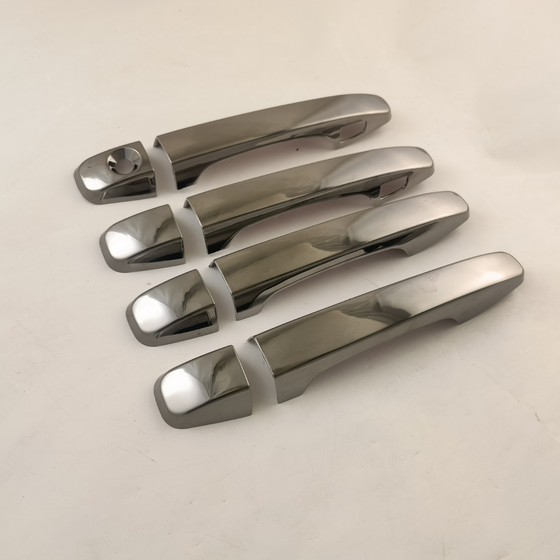 Tags: automotive molding accents, chrome door guards, door handle covers, exterior car styling, gunmetal black trim, protective handle trim