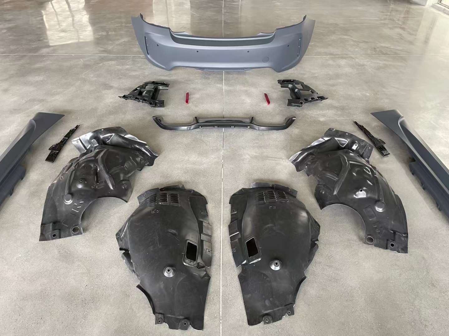 - Comprehensive kit includes front bumper, rear bumper, side skirts, and wide-body fender flares for a seamless visual integration.