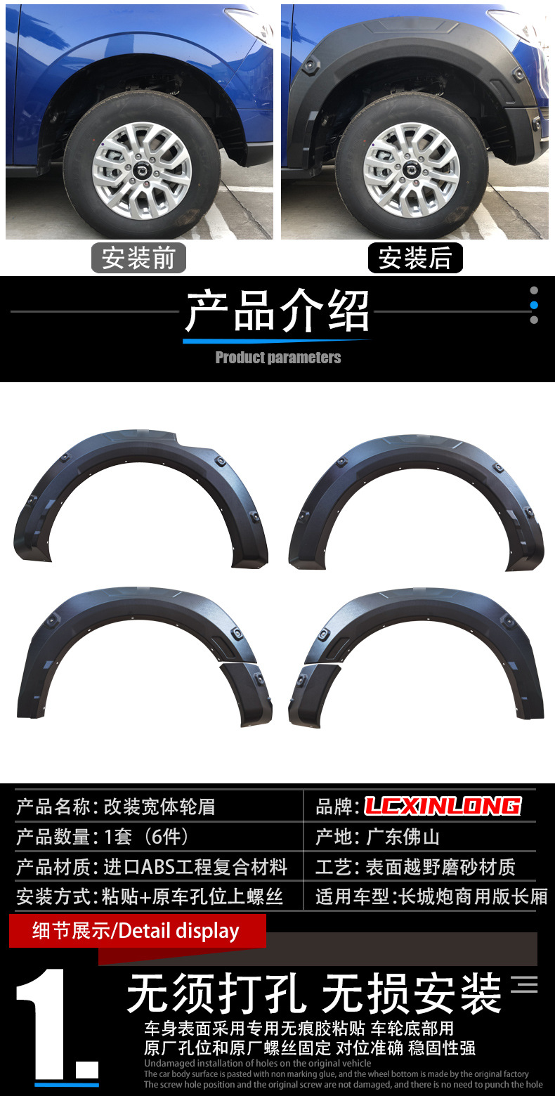 Fender Flares Wide Body Wheel Arch Protector Kit for GWM Poer Cannon Commercial Edition Long Bed