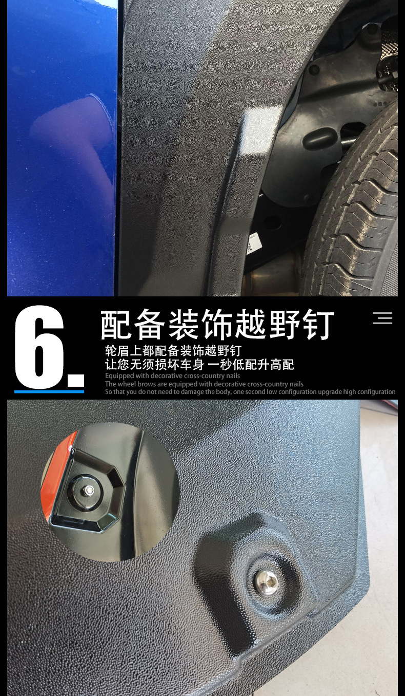 - Provides extra coverage for wider tires and prevents mud, sand, and debris from damaging the body.