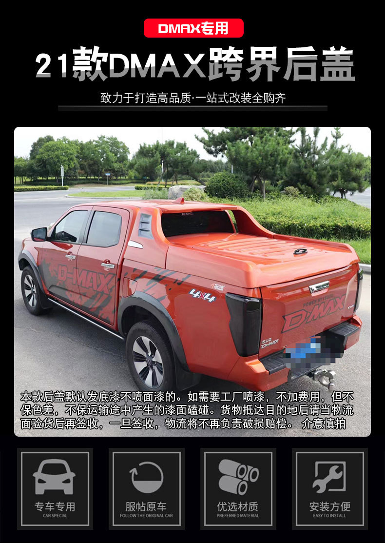 Upgrade your 2021-2023 Isuzu D-MAX with this durable FRP flat tonneau cover. Protect your cargo from the elements and improve aerodynamics with high-quality fiberglass.