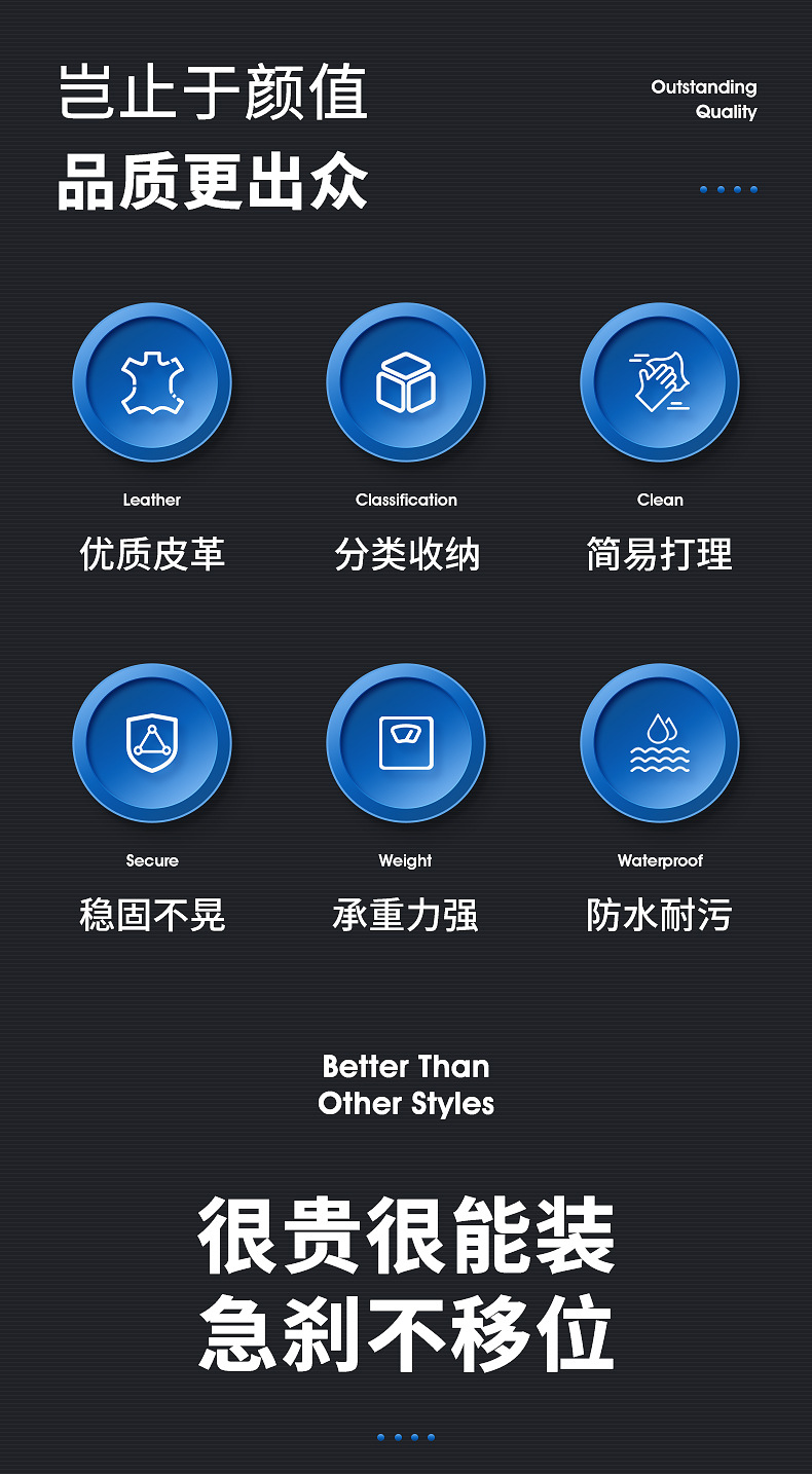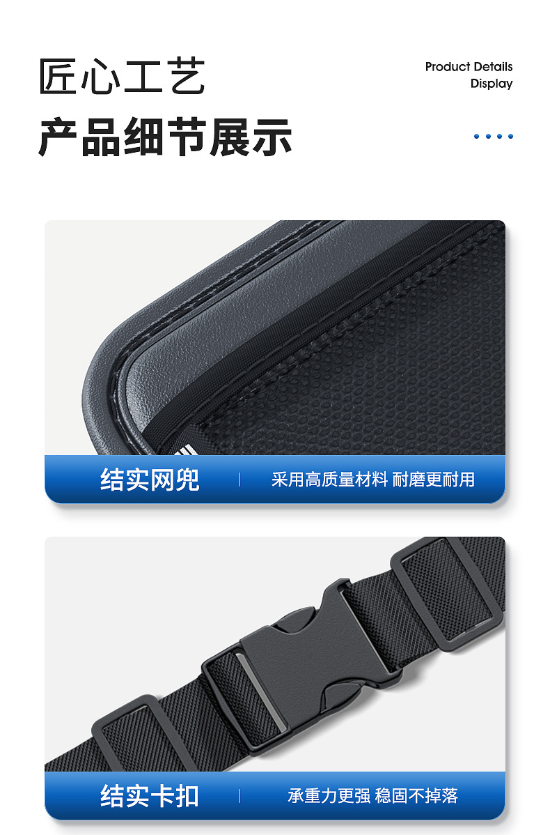 - Features side pockets and compartments for quick access and improved categorization of small items during transit.