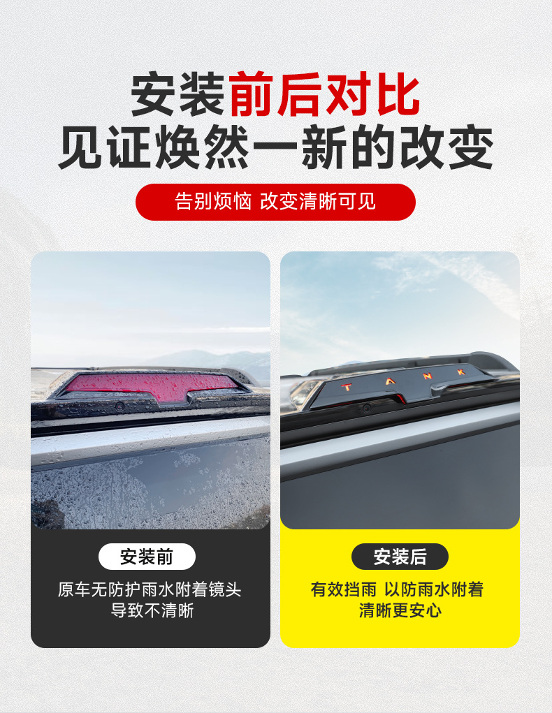 For tank 400hi4t rearview mirror streaming media lens rain cover camera lens rain eyebrow modification accessories