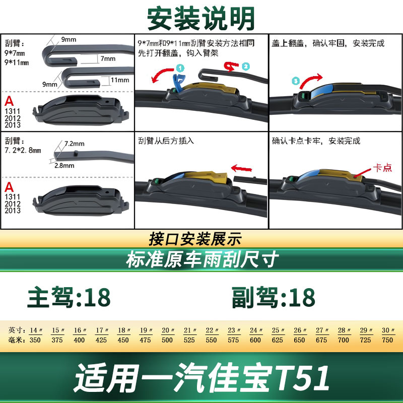 Upgrade your FAW Jiabao T51 with our frameless multi-functional windshield wiper blades. Features silent rubber strips for streak-free visibility in all weather.