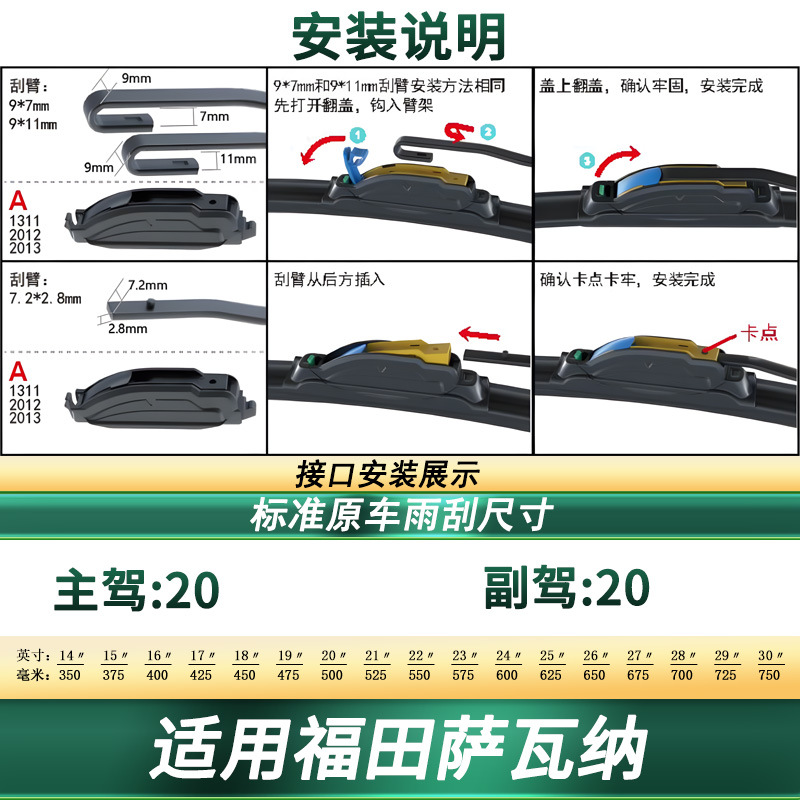 - Easy and quick installation process compatible with the specific wiper arm of the Foton Sauvana.