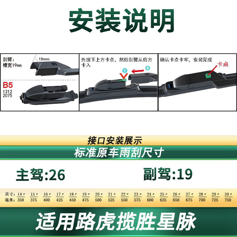 - Integrated silent natural rubber strip provides quiet wiping performance and streak-free clarity.