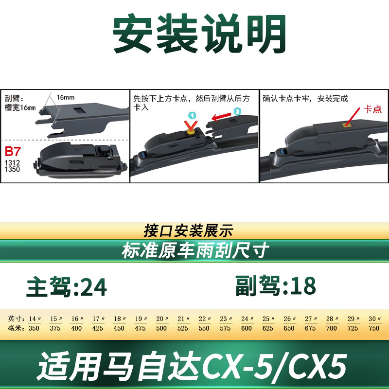 Frameless Windshield Wiper Blades for Mazda CX-5 Multifunctional Silent Rubber Strips
