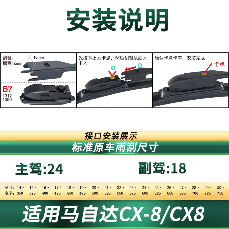 Tags: all-season wiper, car maintenance, frameless wiper, front window wipers, Mazda CX-8 wipers, rubber wiper refills, windshield wiper blades