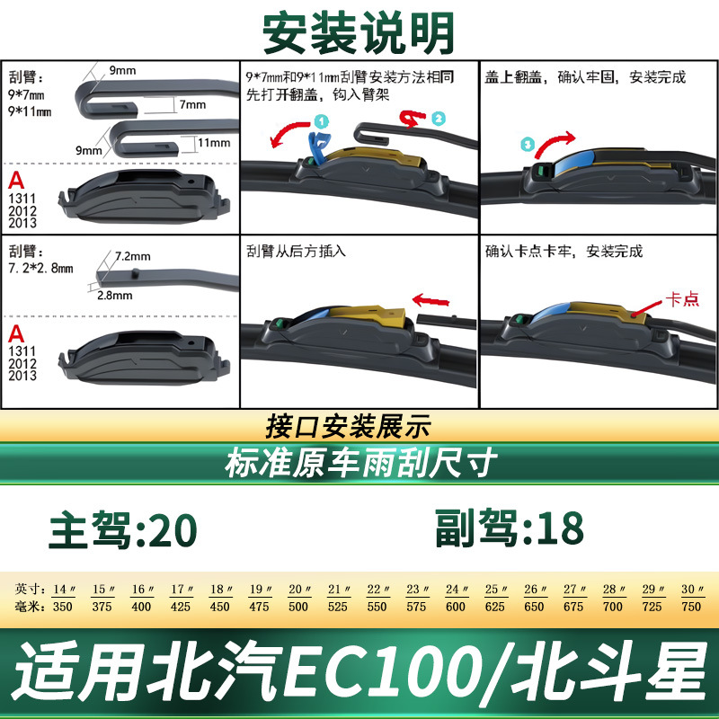 Upgrade to silent, streak-free windshield wiper blades for BAIC EC100/EV2. Durable frameless design with natural rubber for superior visibility in all weather.