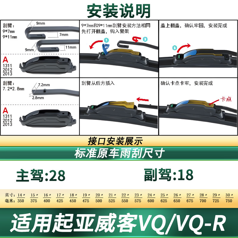 Upgrade your Kia VQ/VQ-R with our premium frameless windshield wiper blades. Featuring silent rubber technology for clear, streak-free visibility in any weather.